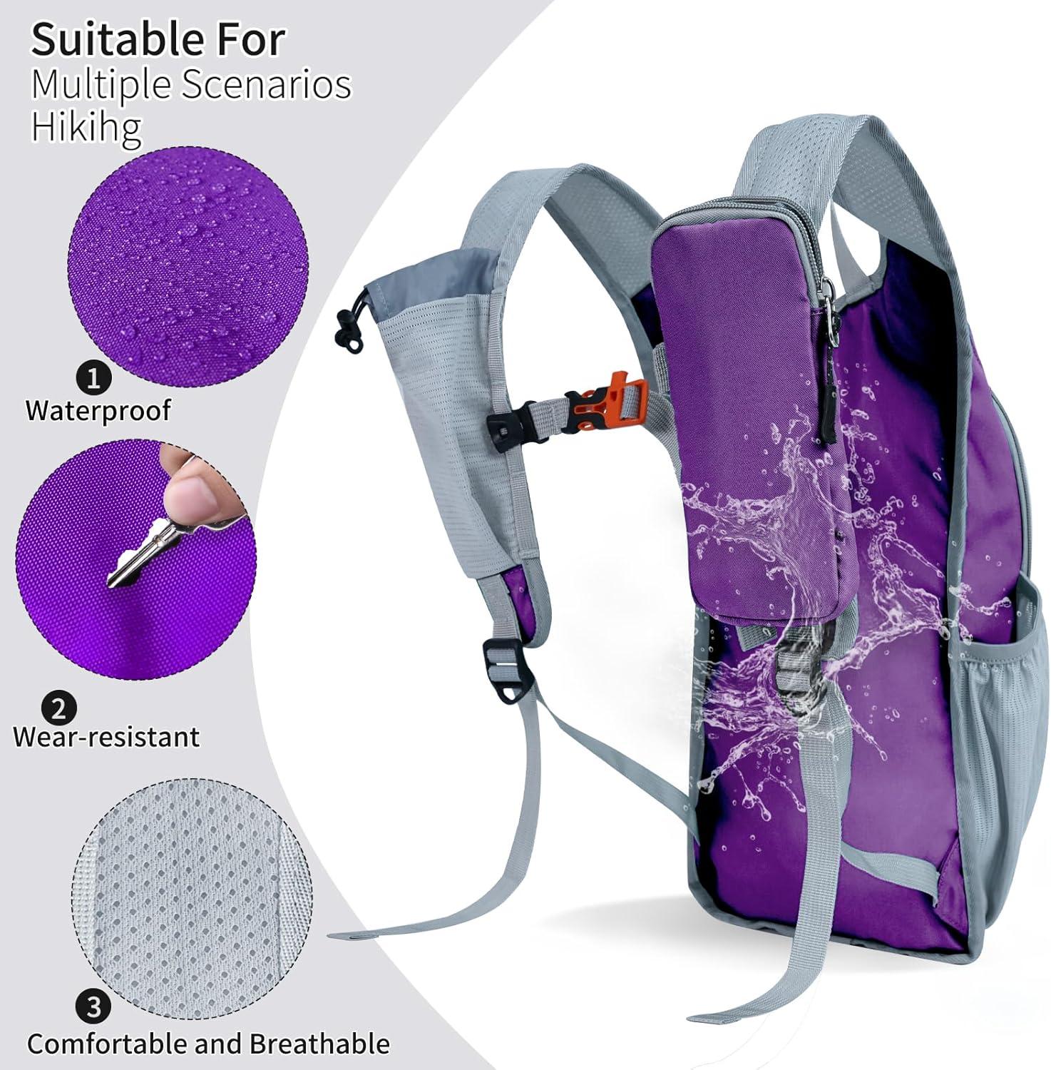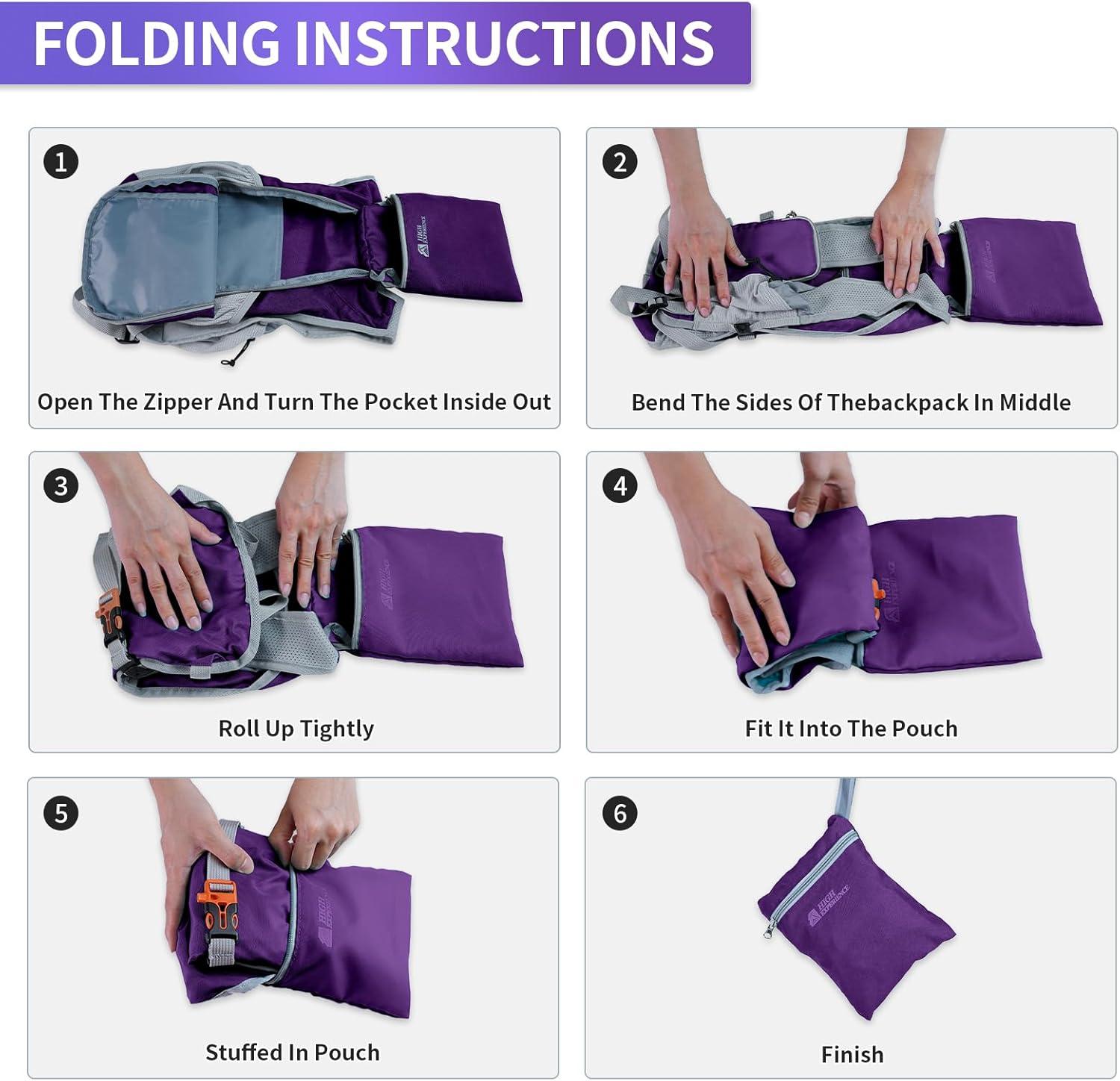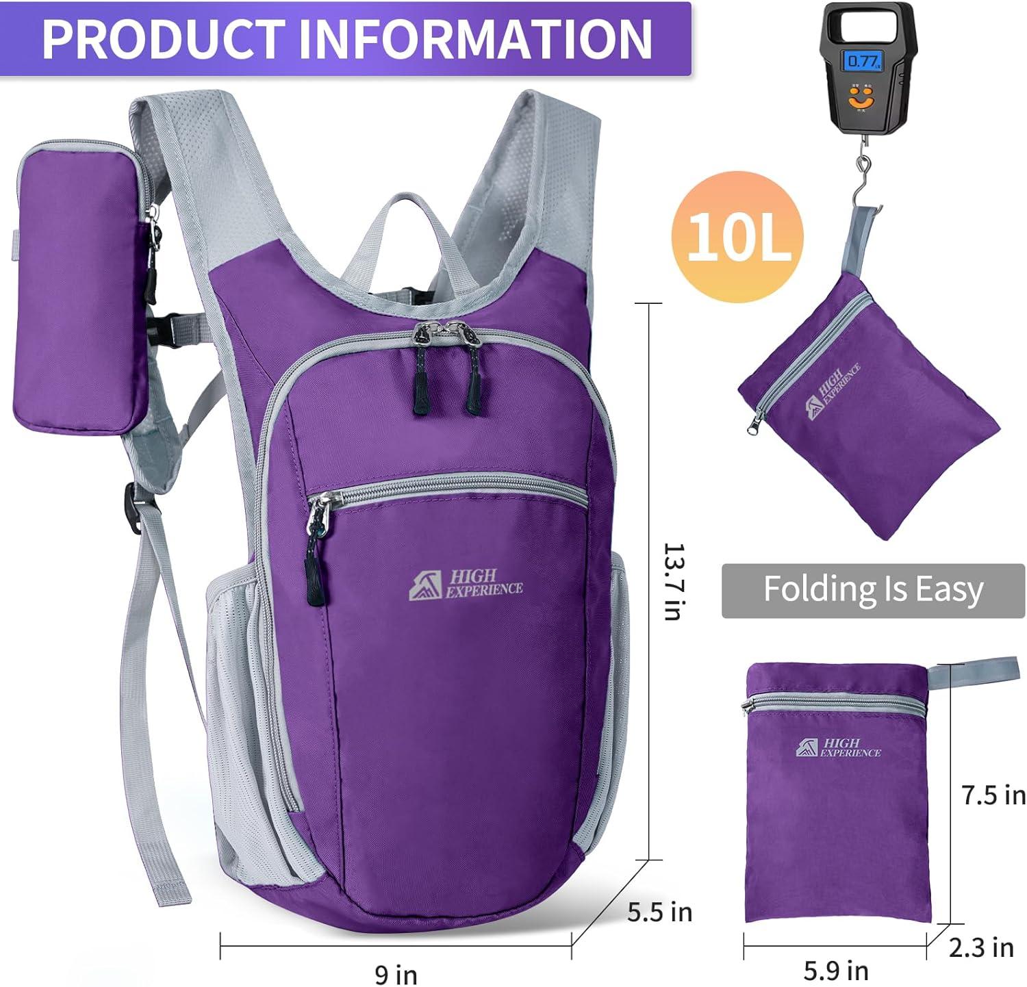 Hiking Backpack 10L/15L Small Daypack Lightweight Packable Travel Foldable Water Resistan for Women Men (Black, 10L)(Deep Purple)