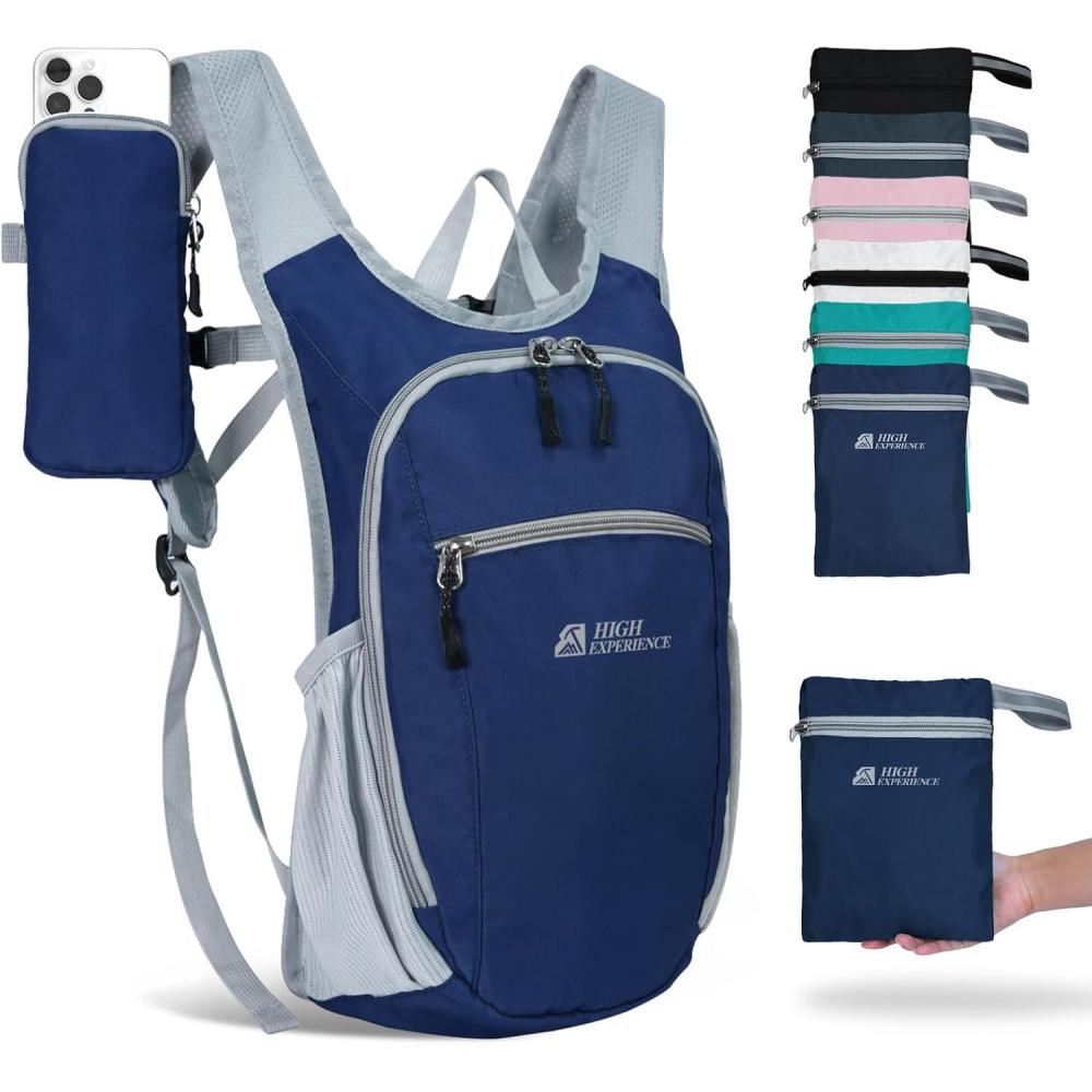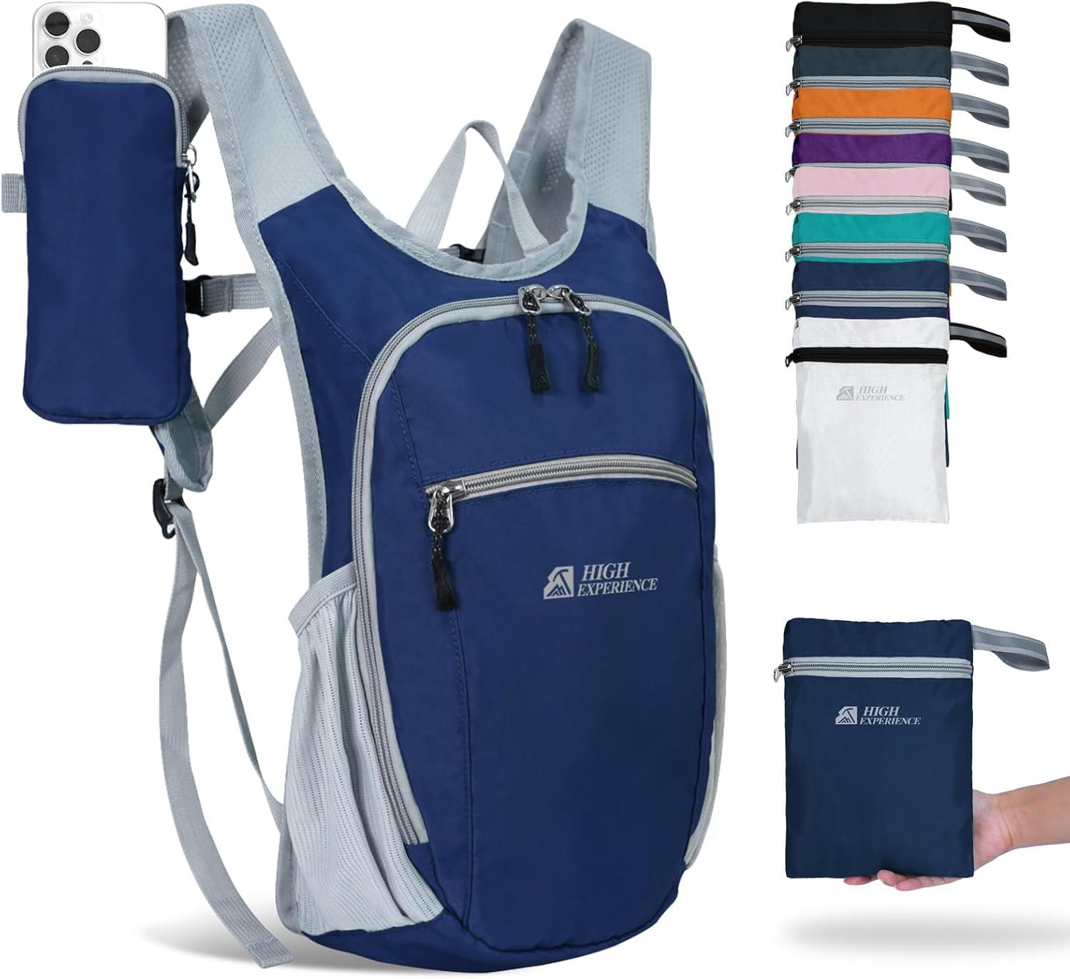 Hiking Backpack 10L/15L Small Daypack Lightweight Packable Travel Foldable Water Resistan for Women Men (Black, 10L)(Navy Blue)