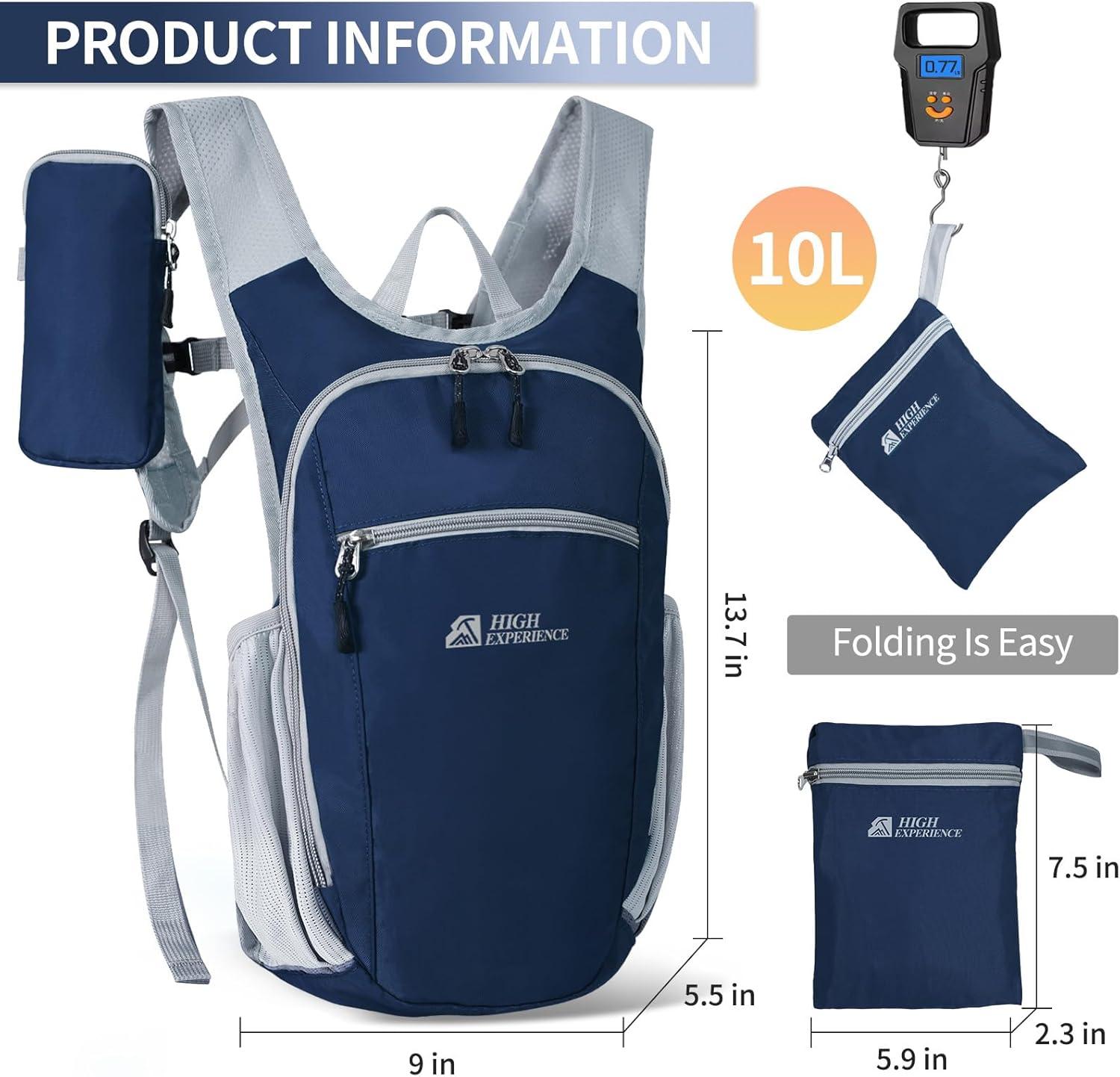 LIGHTWEIGHT AND FOLDABLE: This foldable hiking daypack has a capacity of 10L, weighs only 0.77LB, and the folded size is only 5.9″x7.5″x2.3″, the hiking backpack is lightweight, small in size, easy to carry, and it's enough to allow you to carry some of your daily necessities with you.