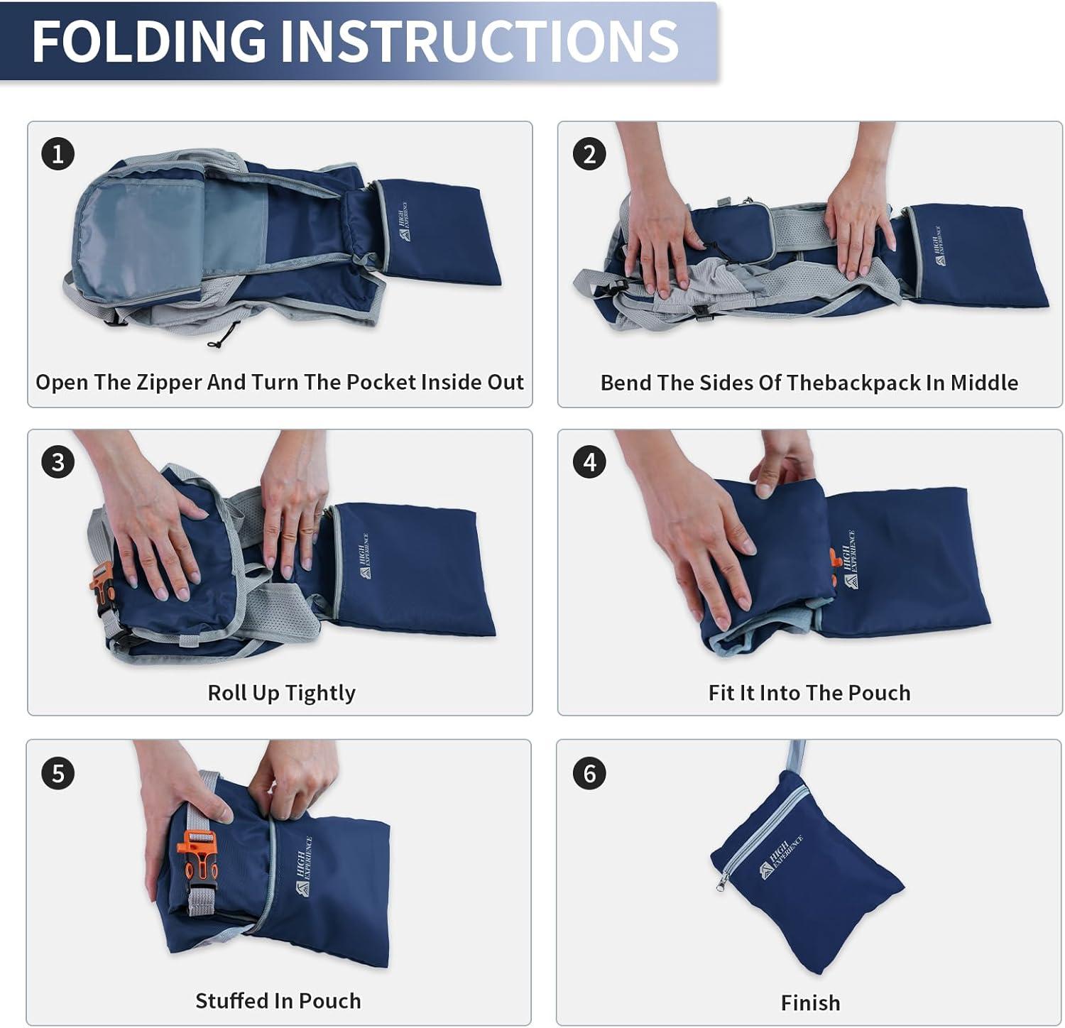 MULTI-FUNCTIONAL: we designed the packable hike backpack with 7 pockets to prevent items, when not in use, it is easy to fold into a small bag, convenient to put anywhere for spare time, and the chest buckle of the folding travel backpack can be adjusted up and down to achieve a comfortable position, the chest buckle is equipped with a whistle, which can be blown when needed.