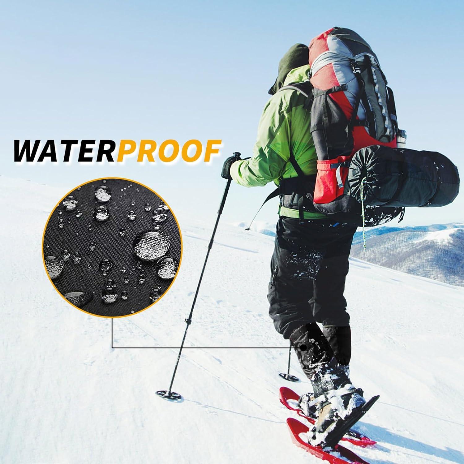LIGHTWEIGHT AND EASY TO CARRY: The waterproof leg gators with a storage bag, the folded size is: 5.1 “x7 “x2”, weight is: 0.41 lb, lightweight and easy to fold and carry, folded up in a small size, easy to carry, you can carry one in the mountaineering and hiking or outdoor activities put it in your backpack, easy to use when you need it.