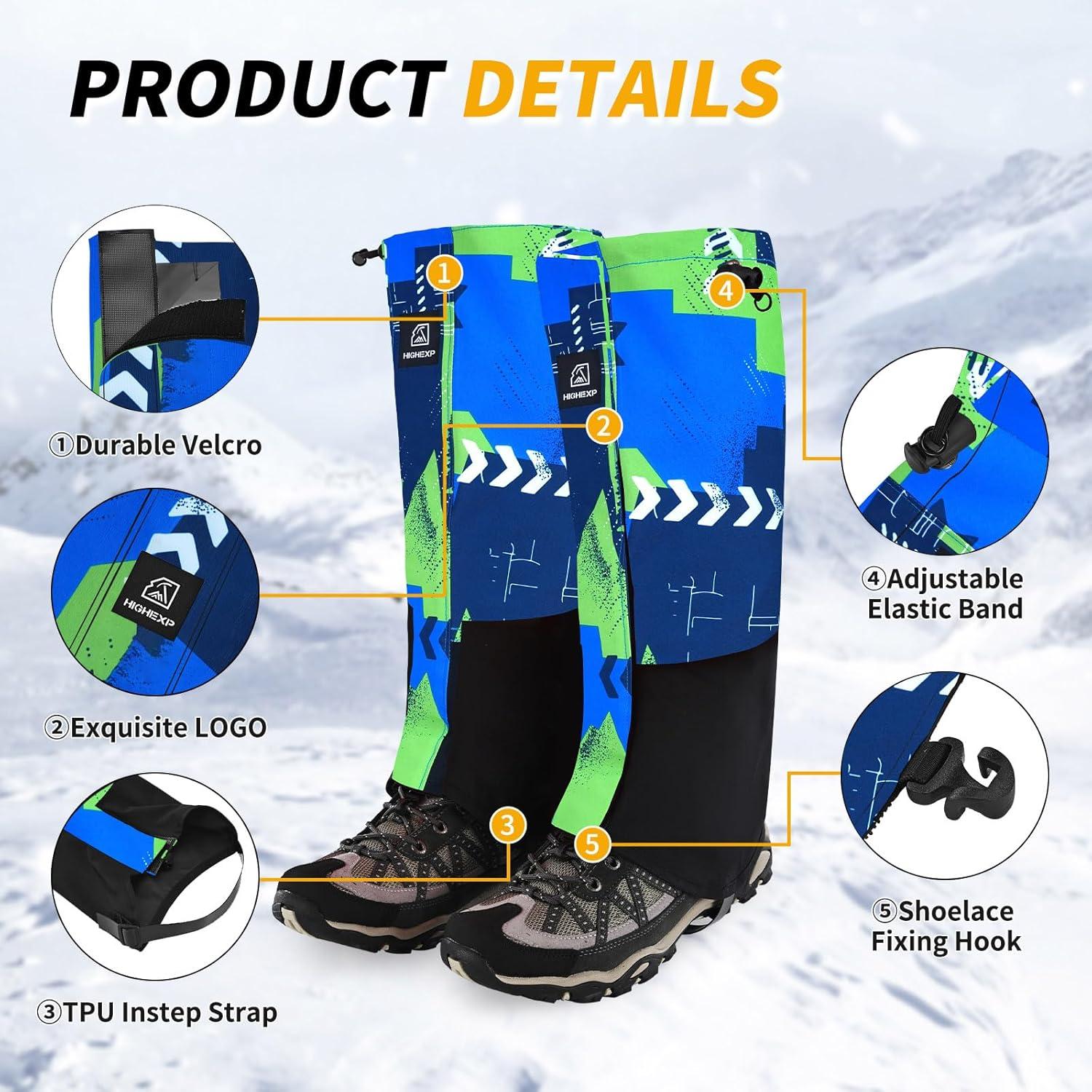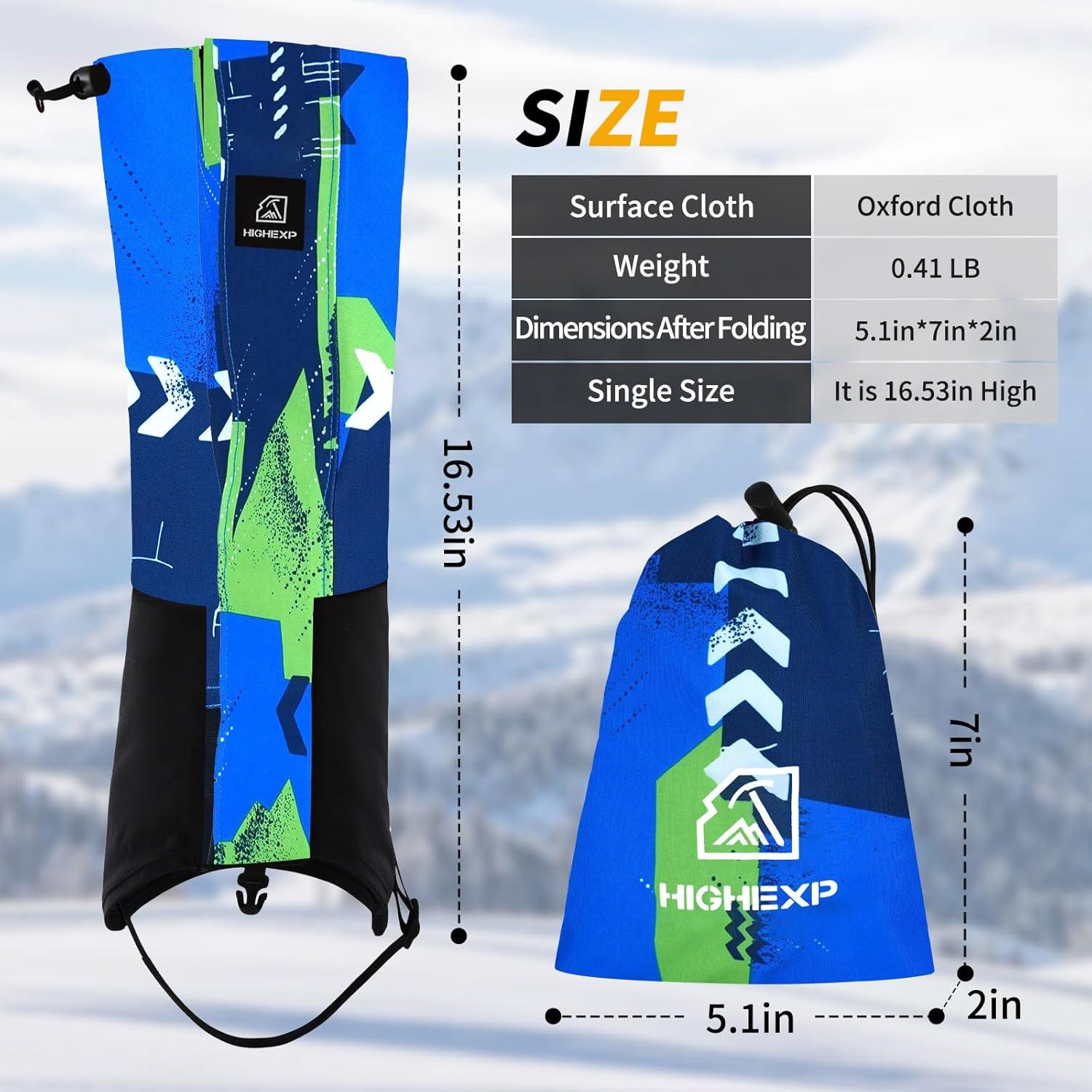 Leg Gaiters 100% Waterproof Adjustable Shoe Snow Boot Guard Gators for Hiking Shoe Cover Hunting Snowshoeing Climbing Walking for Women Men(Blue Graffiti)