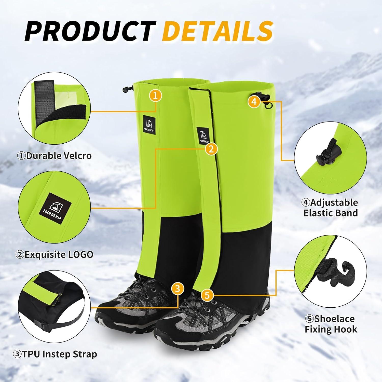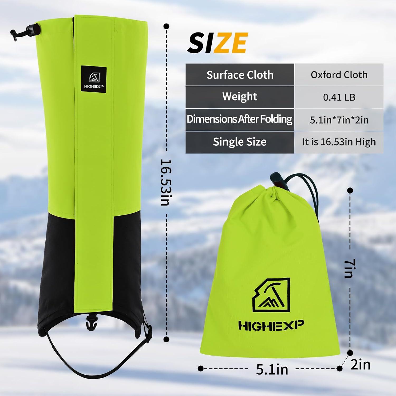 Leg Gaiters 100% Waterproof Adjustable Shoe Snow Boot Guard Gators for Hiking Shoe Cover Hunting Snowshoeing Climbing Walking for Women Men(Green)