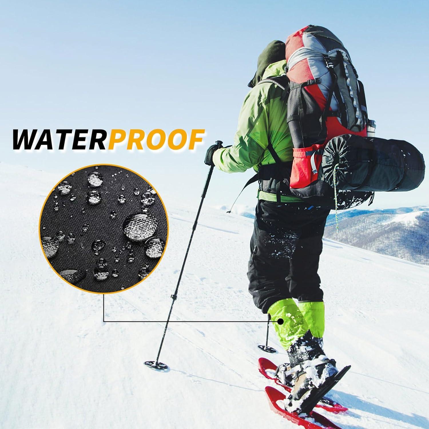 LIGHTWEIGHT AND EASY TO CARRY: The waterproof leg gators with a storage bag, the folded size is: 5.1 “x7 “x2”, weight is: 0.41 lb, lightweight and easy to fold and carry, folded up in a small size, easy to carry, you can carry one in the mountaineering and hiking or outdoor activities put it in your backpack, easy to use when you need it.