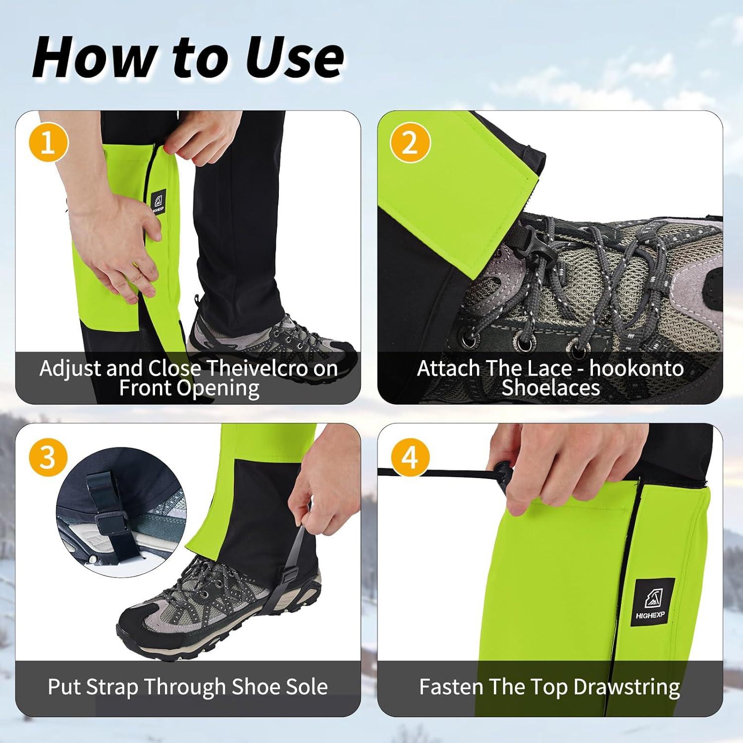 APPLICATION SCENARIO: Our hiking gators are perfect for hiking, snowshoeing, skiing, jungle areas, muddy areas, rainy wetlands, rocky climbs, river crossings and other scenarios, can also be used in lawn work, and is also a good helper for home gardening, with our hiking boot covers, you can always keep your shoes comfortable inside in any harsh scenarios.
