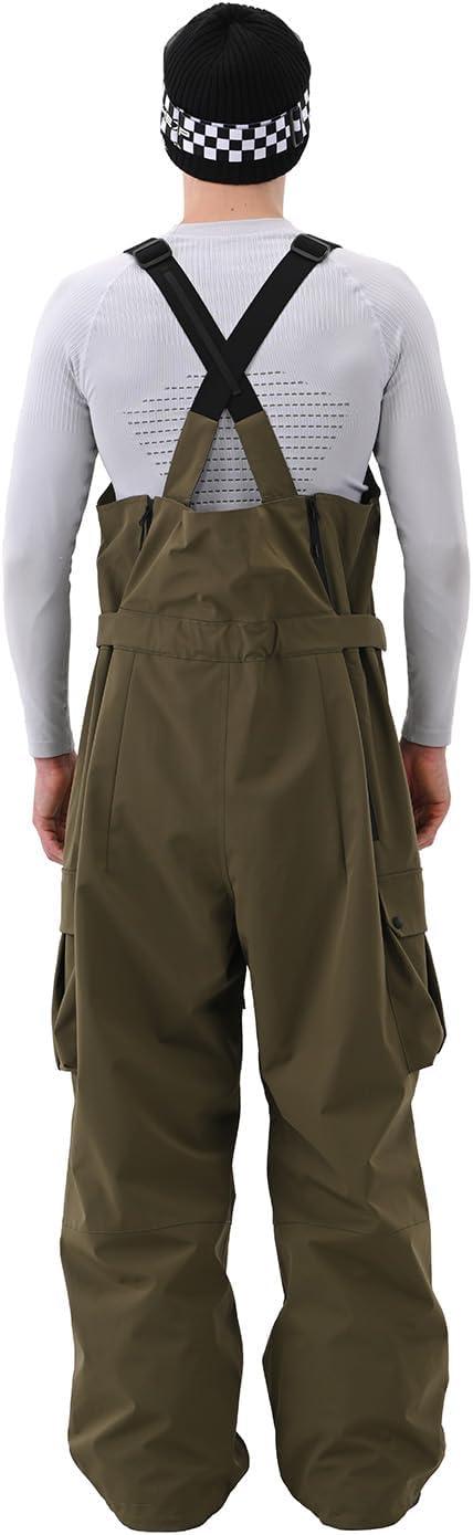 Men Ski Bib 3L Snowboard Baggy Pants Snow Overalls Waterproof Windproof Insulate Warm Winter(Army Green)