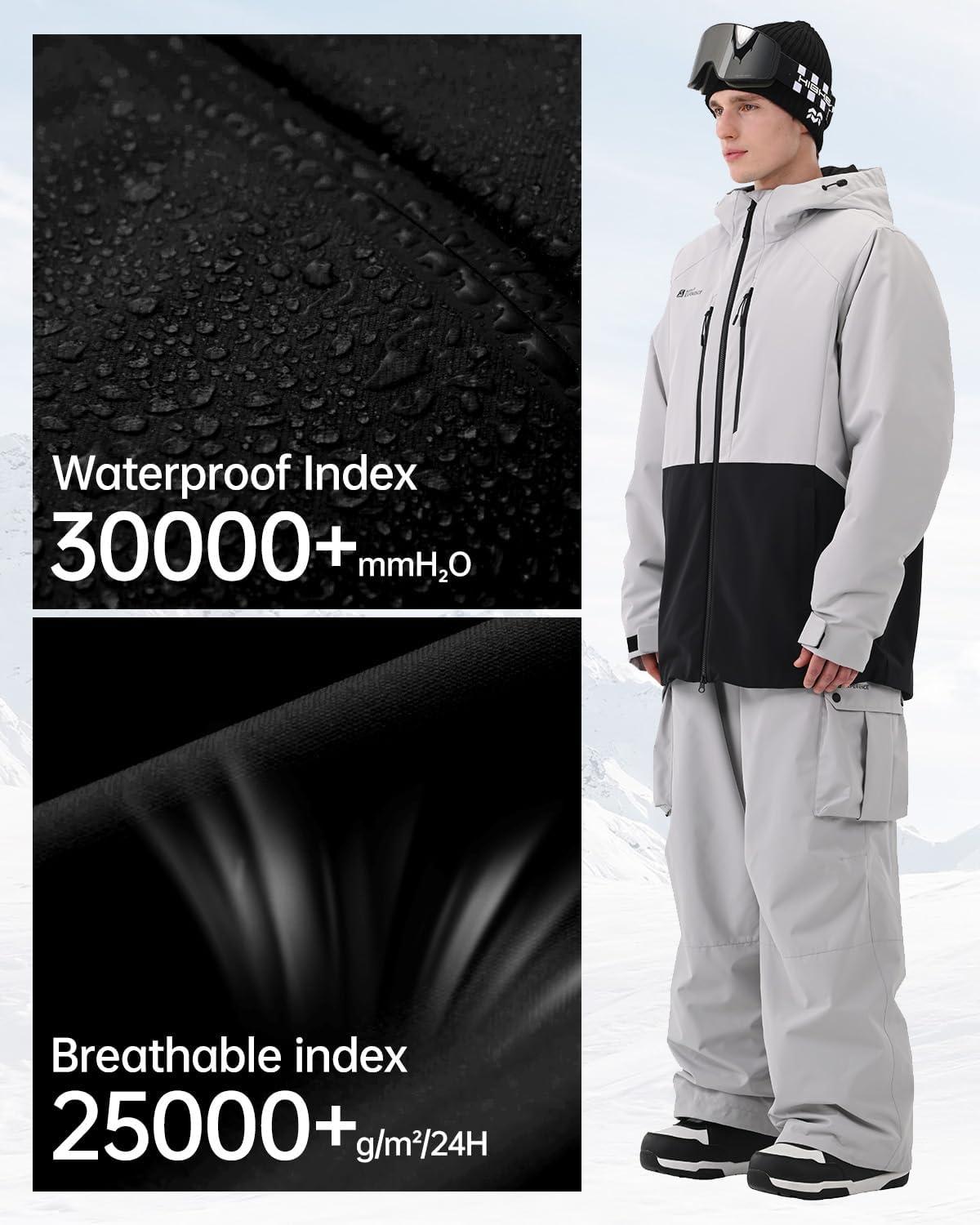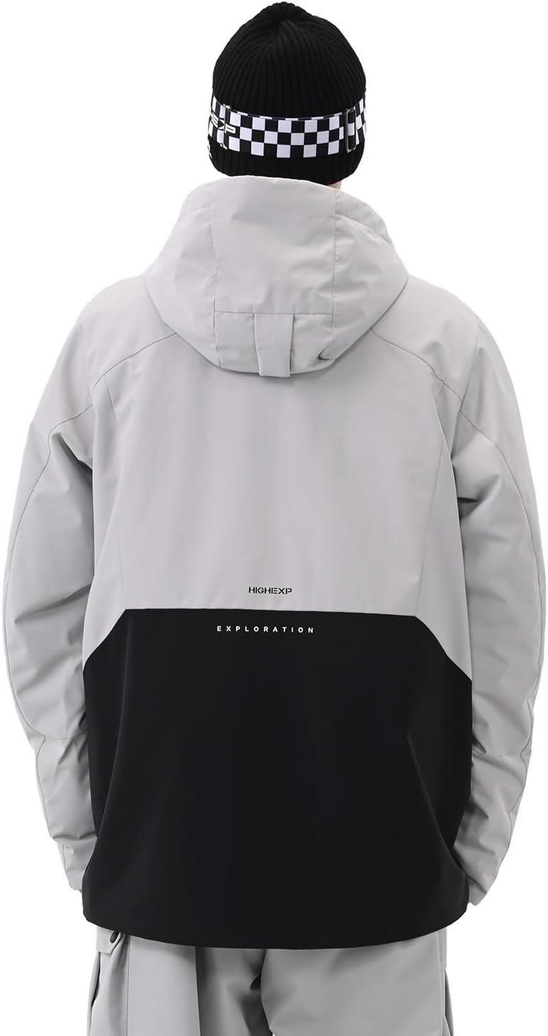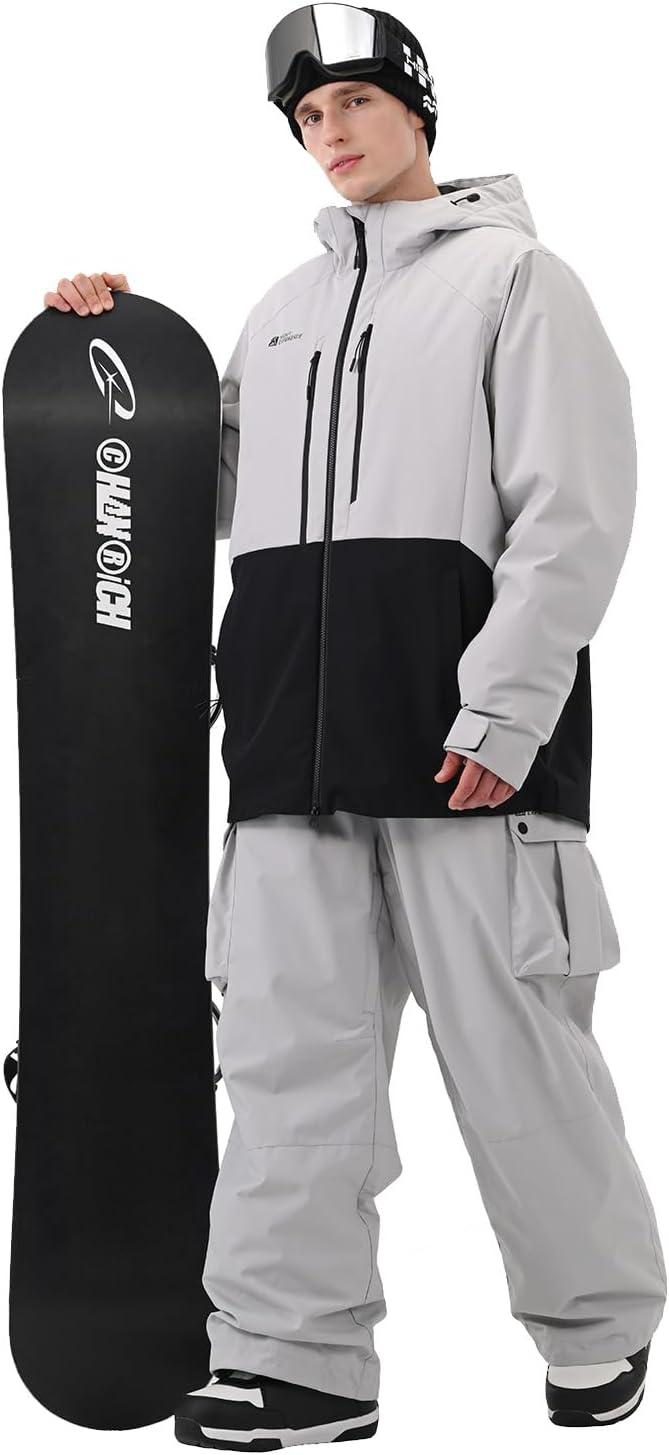 Mens Ski Jacket Snowboard 3L Coat Baggy Waterproof Windproof Warm Insulated Snow Winter Hooded(Gray Black)