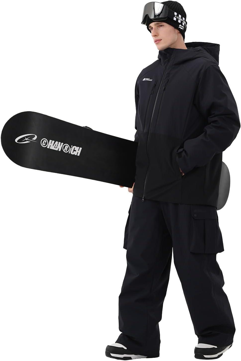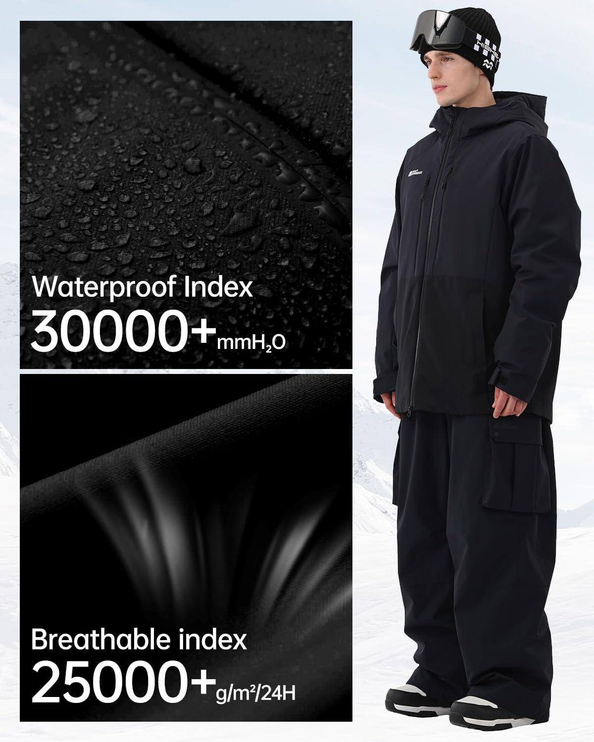 Mens Ski Jacket Snowboard 3L Coat Baggy Waterproof Windproof Warm Insulated Snow Winter Hooded(Navy Blue Black)