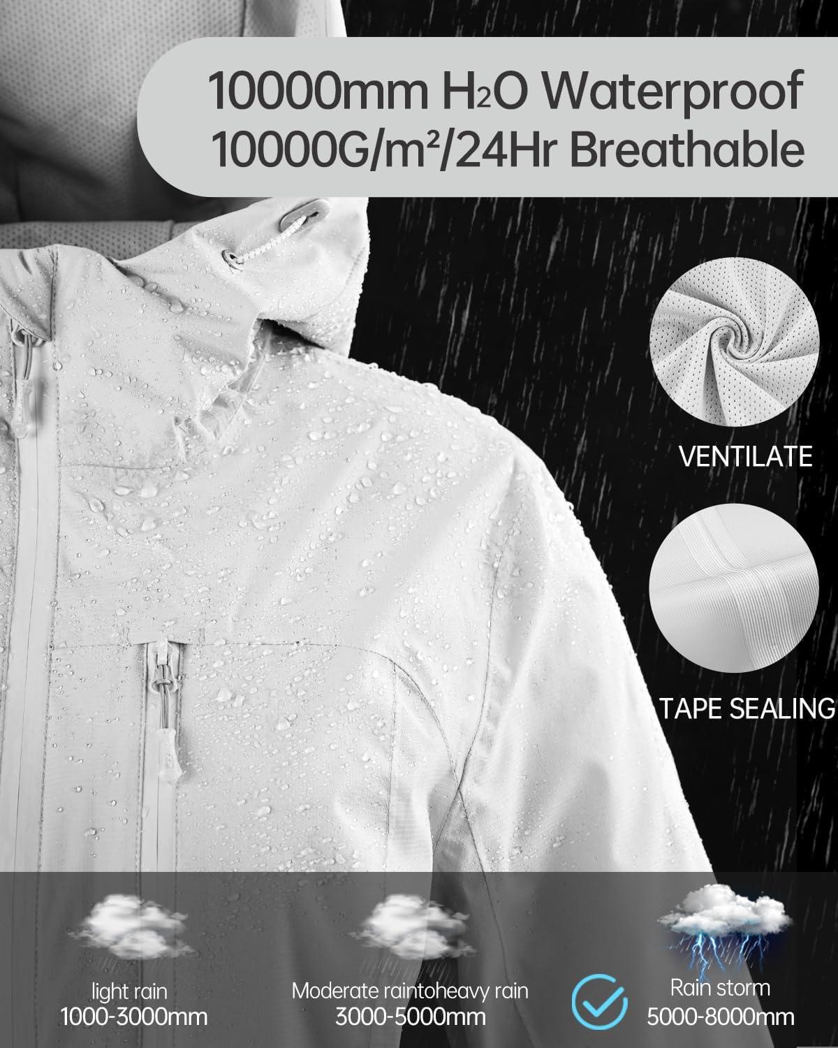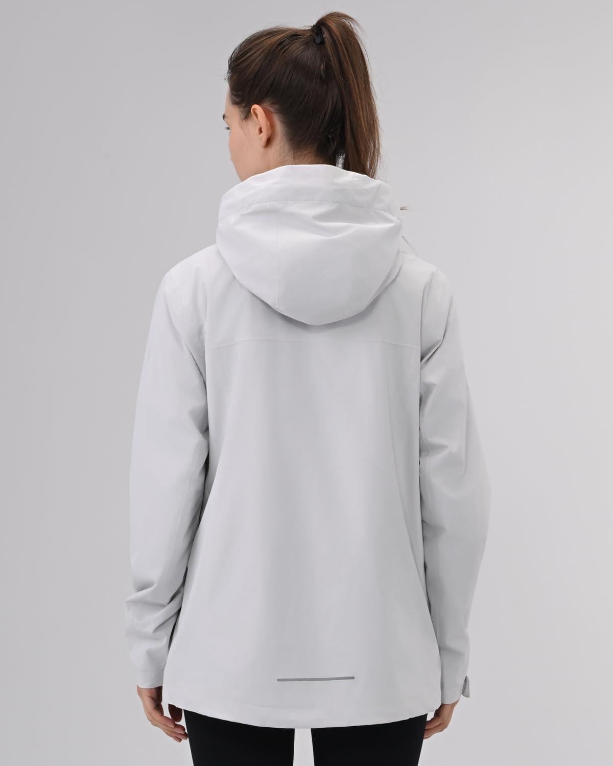 Rain Jacket Women Packable Lightweight Waterproof Raincoat with Hood Coat Hiking Cycling Travel Windbreaker(Grey White)