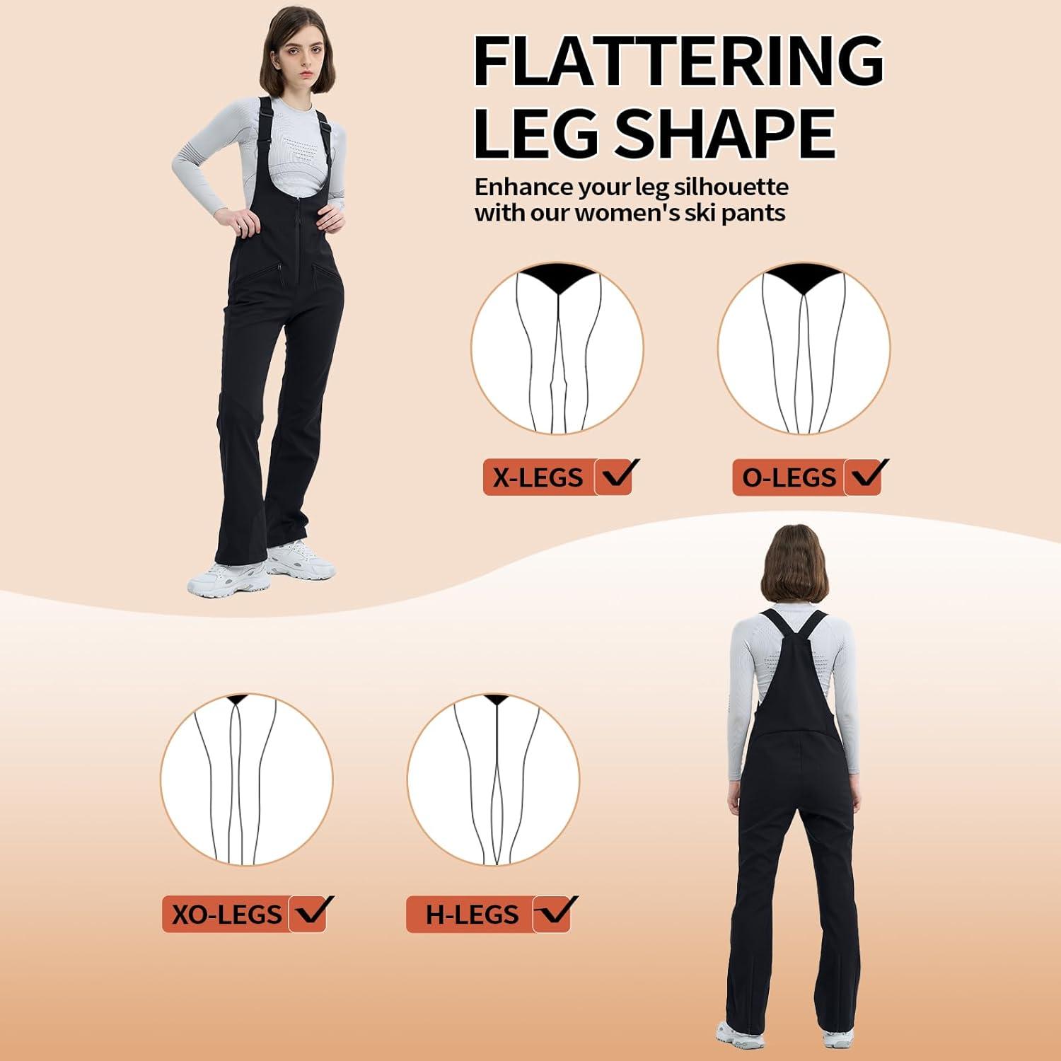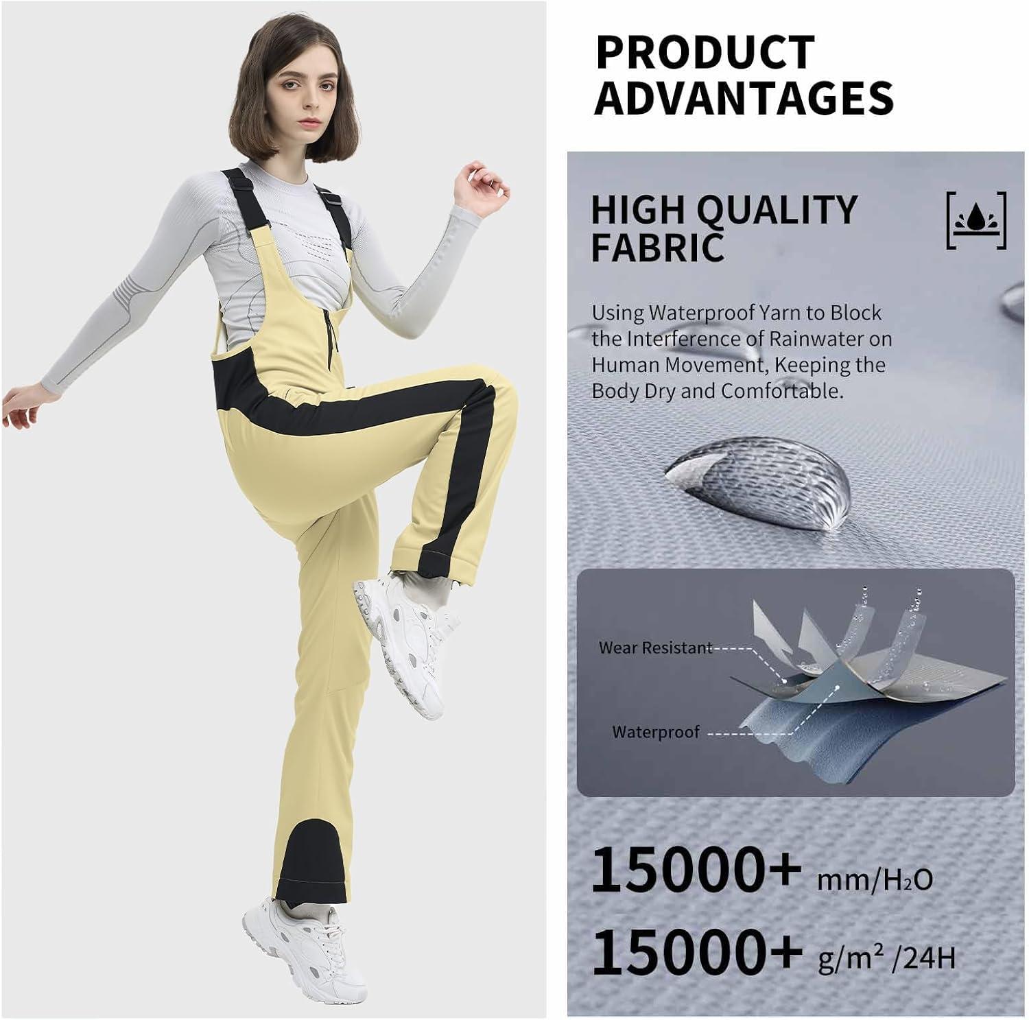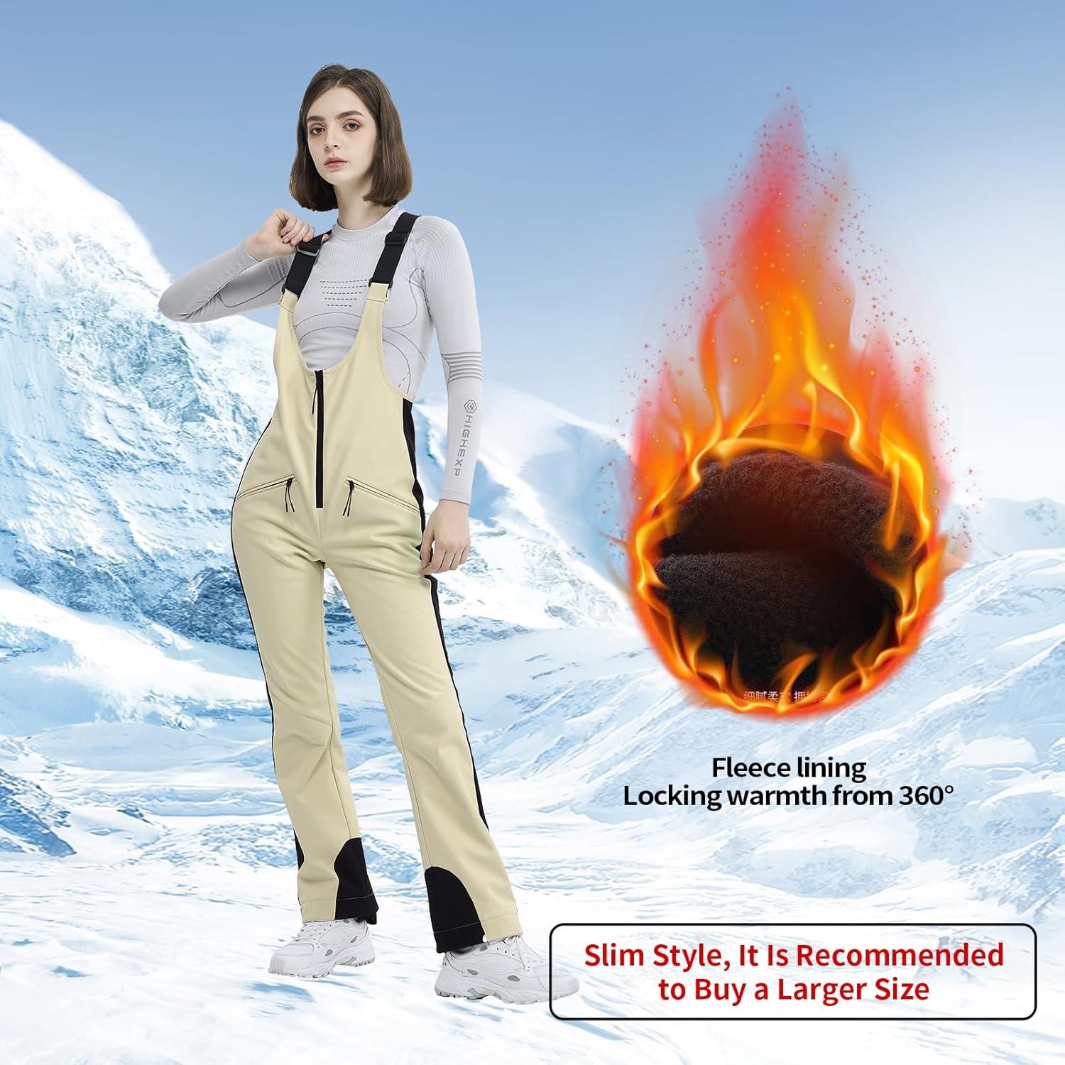 Ski Bib Pants for Women Snow Skinny Overalls Soft Shell Slim Fit Fitted Snowboard Suspenders Waterproof Warm(Light Khaki)