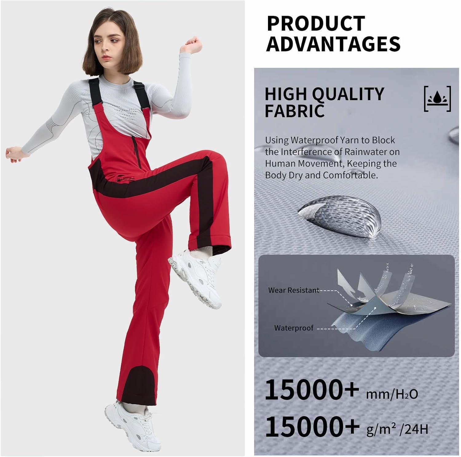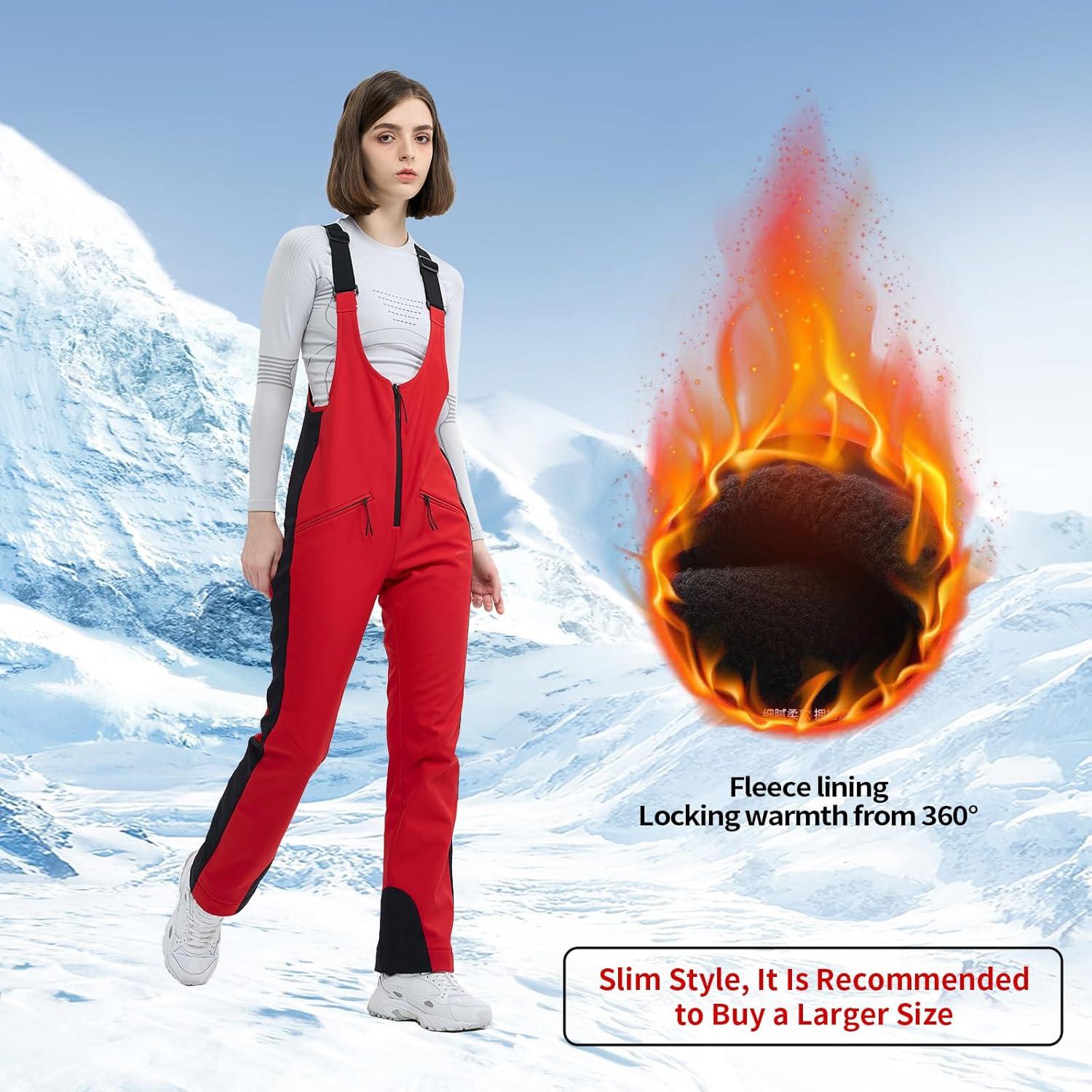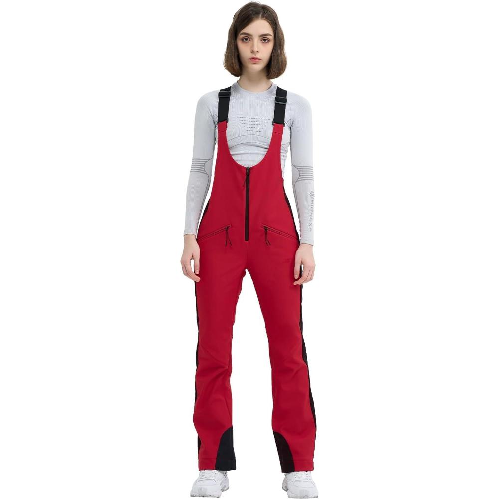 Ski Bib Pants for Women Snow Skinny Overalls Soft Shell Slim Fit Fitted Snowboard Suspenders Waterproof Warm(Red)