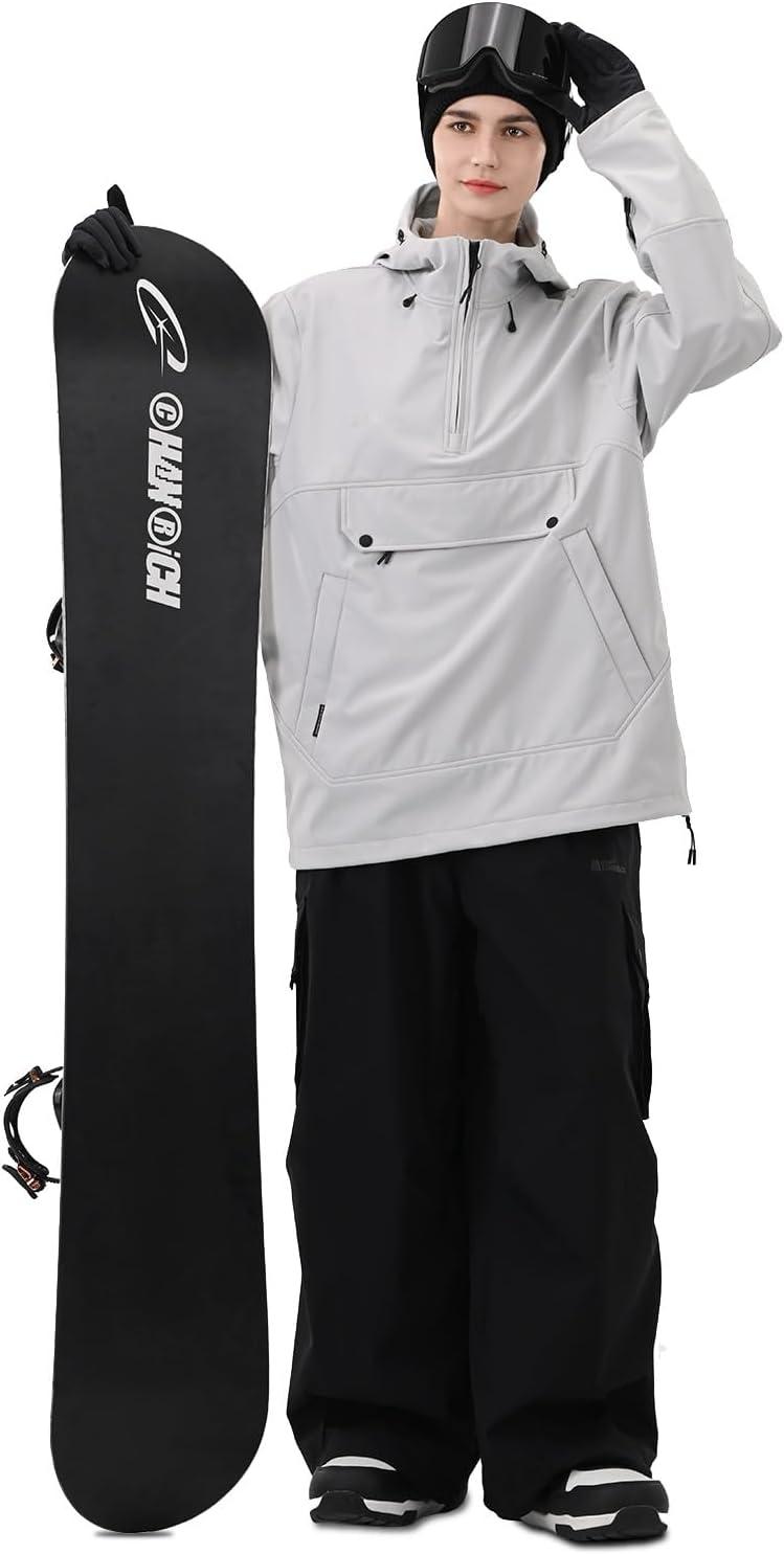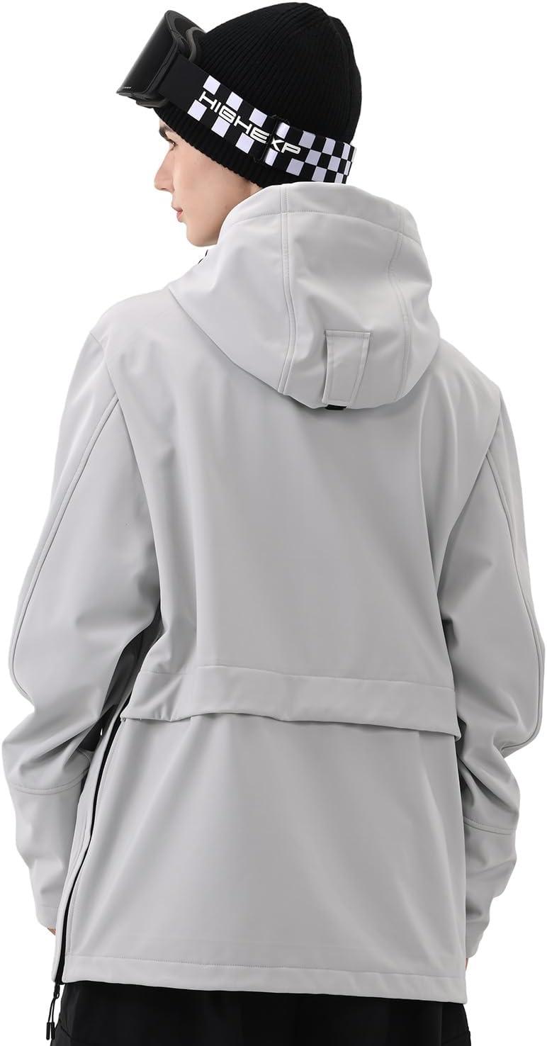 Ski Hoodie Snowboard Pullover Jacket Snow Anarok Baggy Waterproof Windproof Insulated for Women Men(Light Gray)