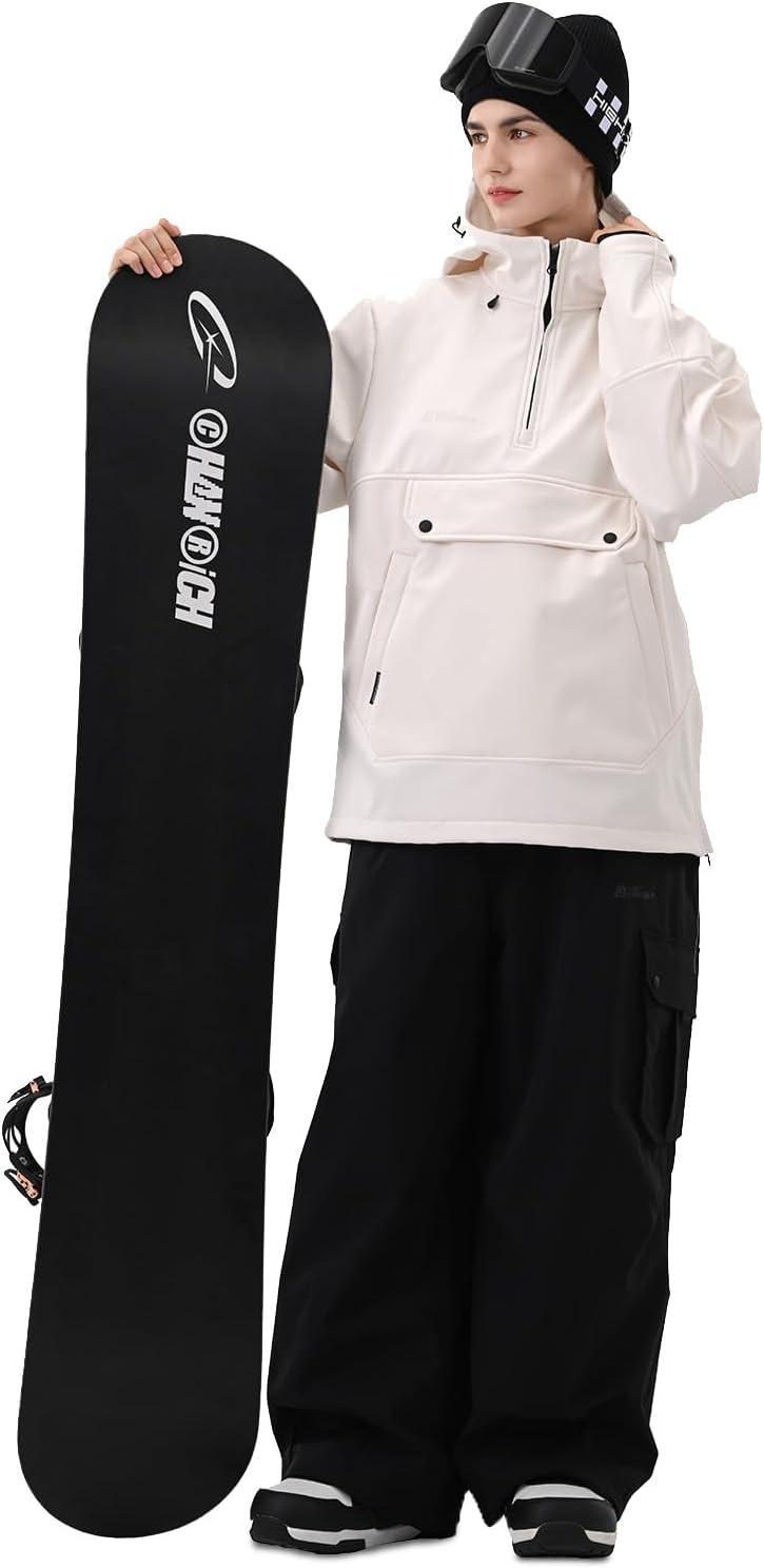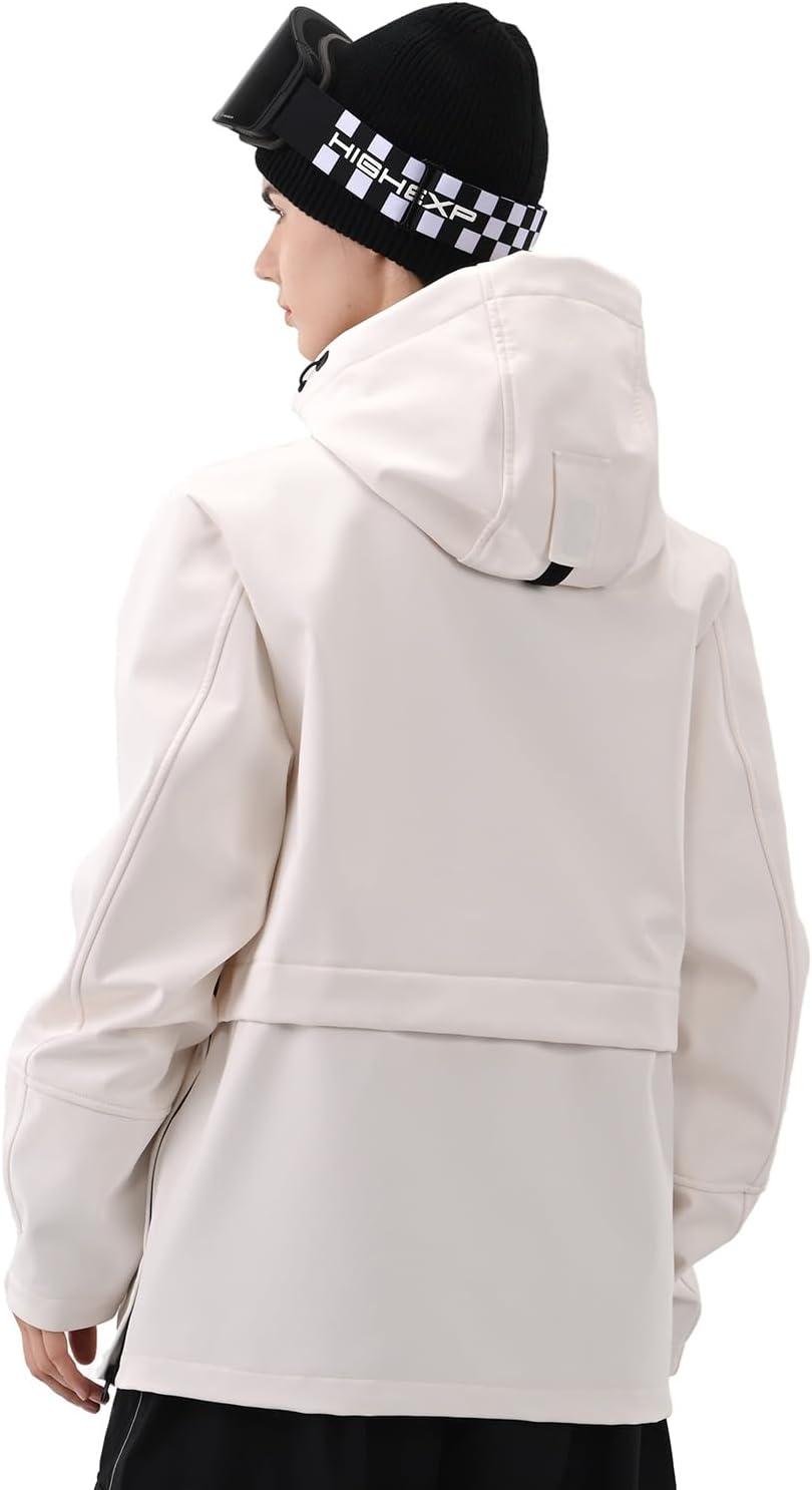 Ski Hoodie Snowboard Pullover Jacket Snow Anarok Baggy Waterproof Windproof Insulated for Women Men(Pink White)