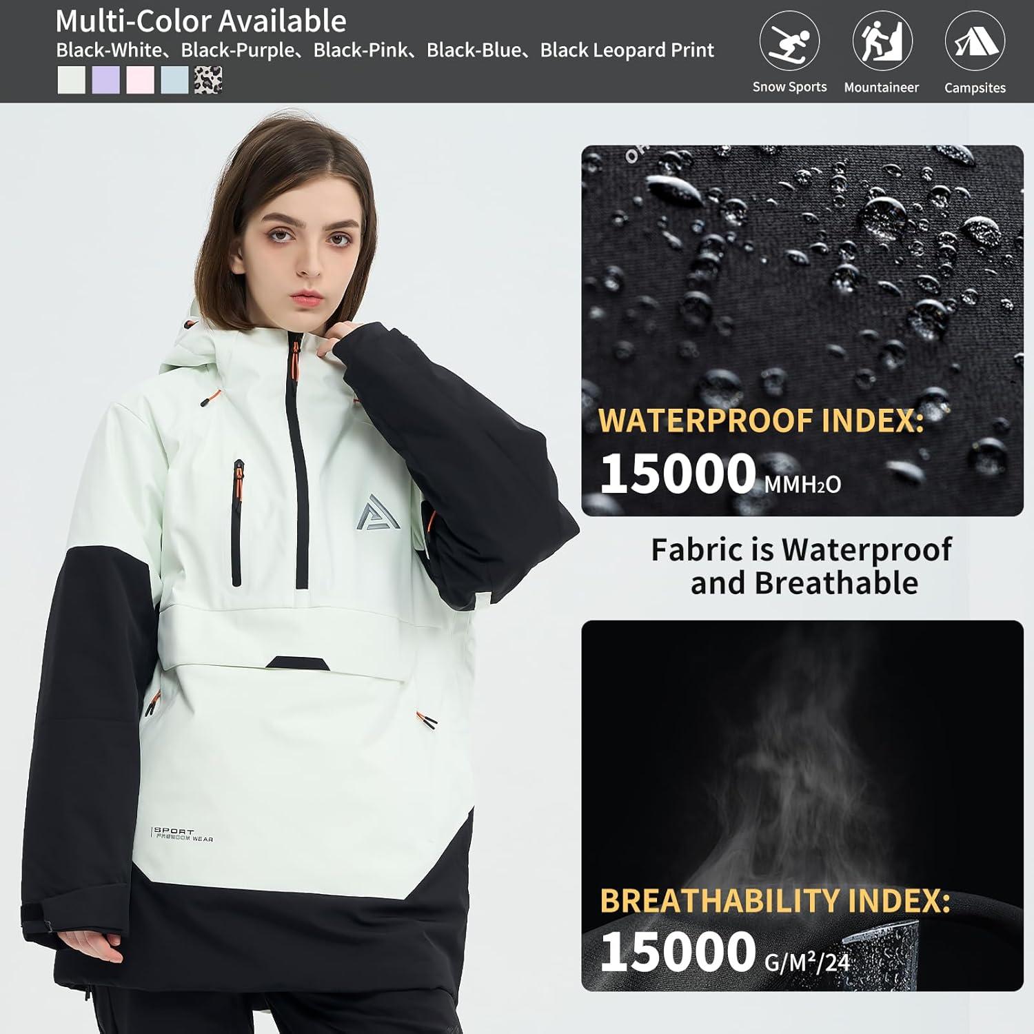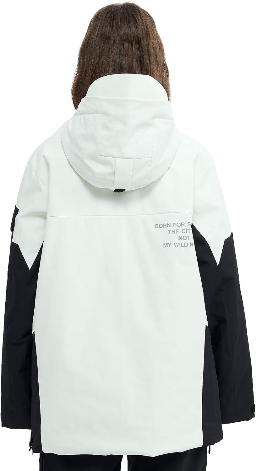 Ski Jacket Snowboard Anorak Coat Pullover Baggy Snow Hooded Insulated Hoodie Waterproof Warm for Women Men(Black-white)