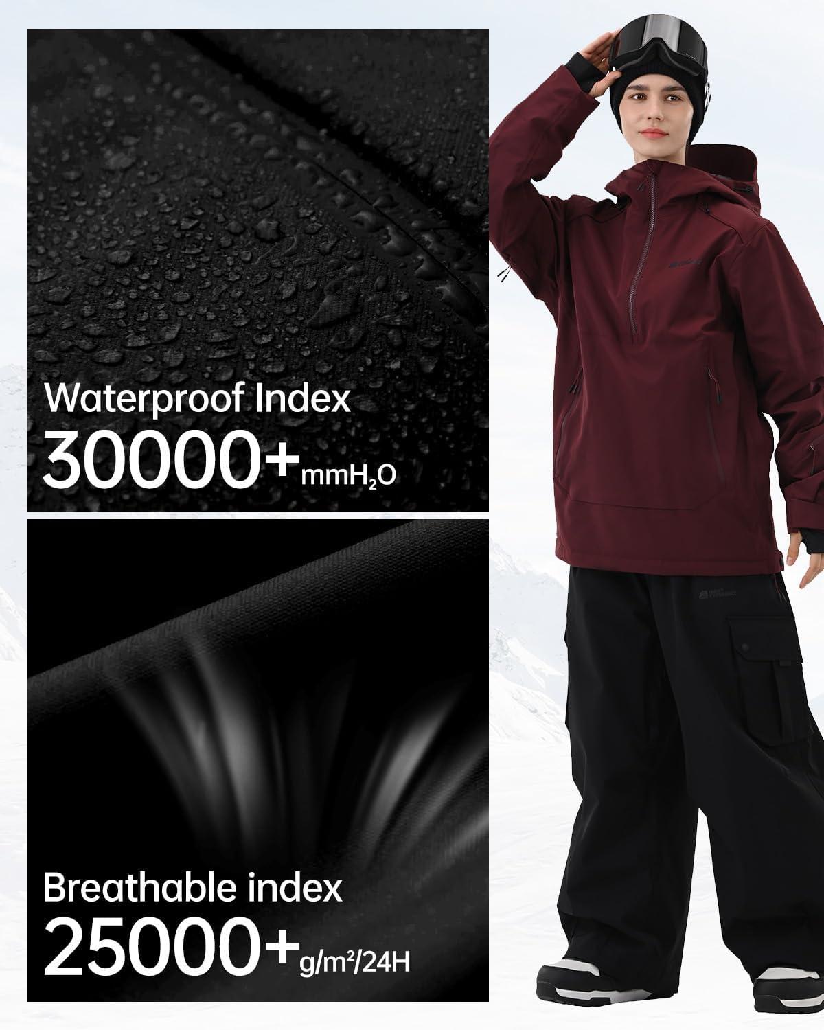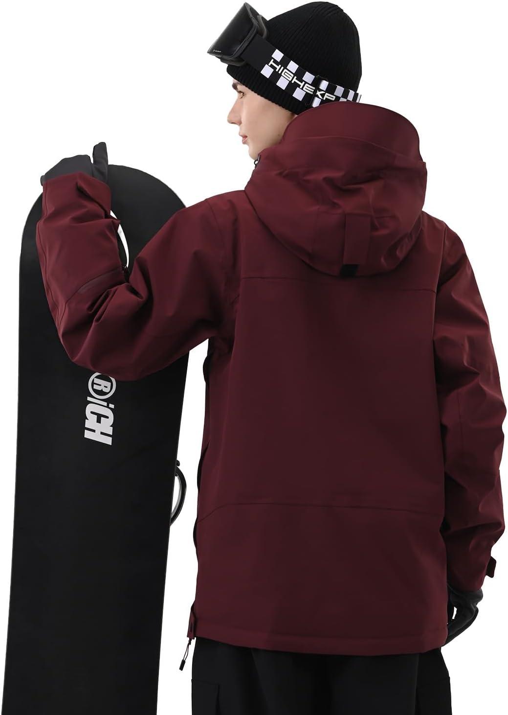 Ski Jacket Women with Recco 3L Snowboard Anorak Pullover Baggy Coat Hooded Insulated Hoodie Waterproof Warm(Burgundy Red)