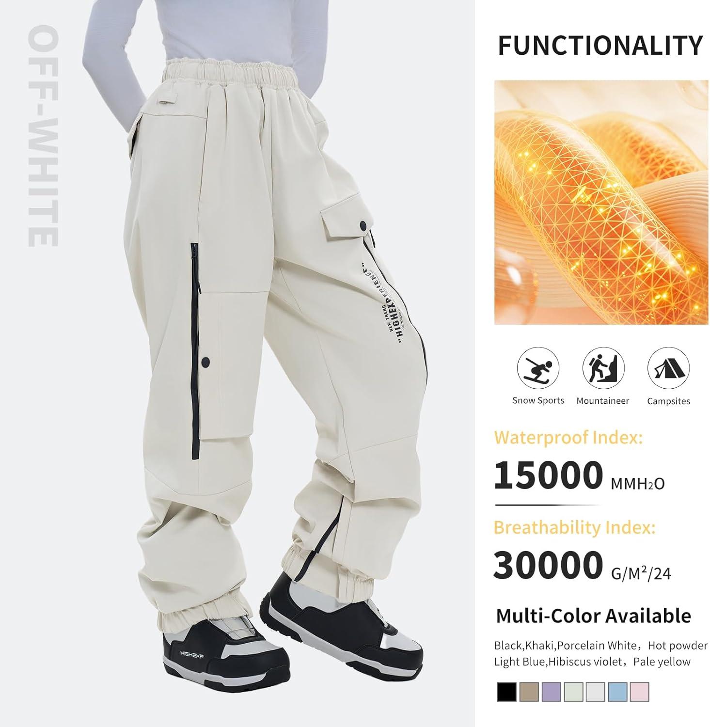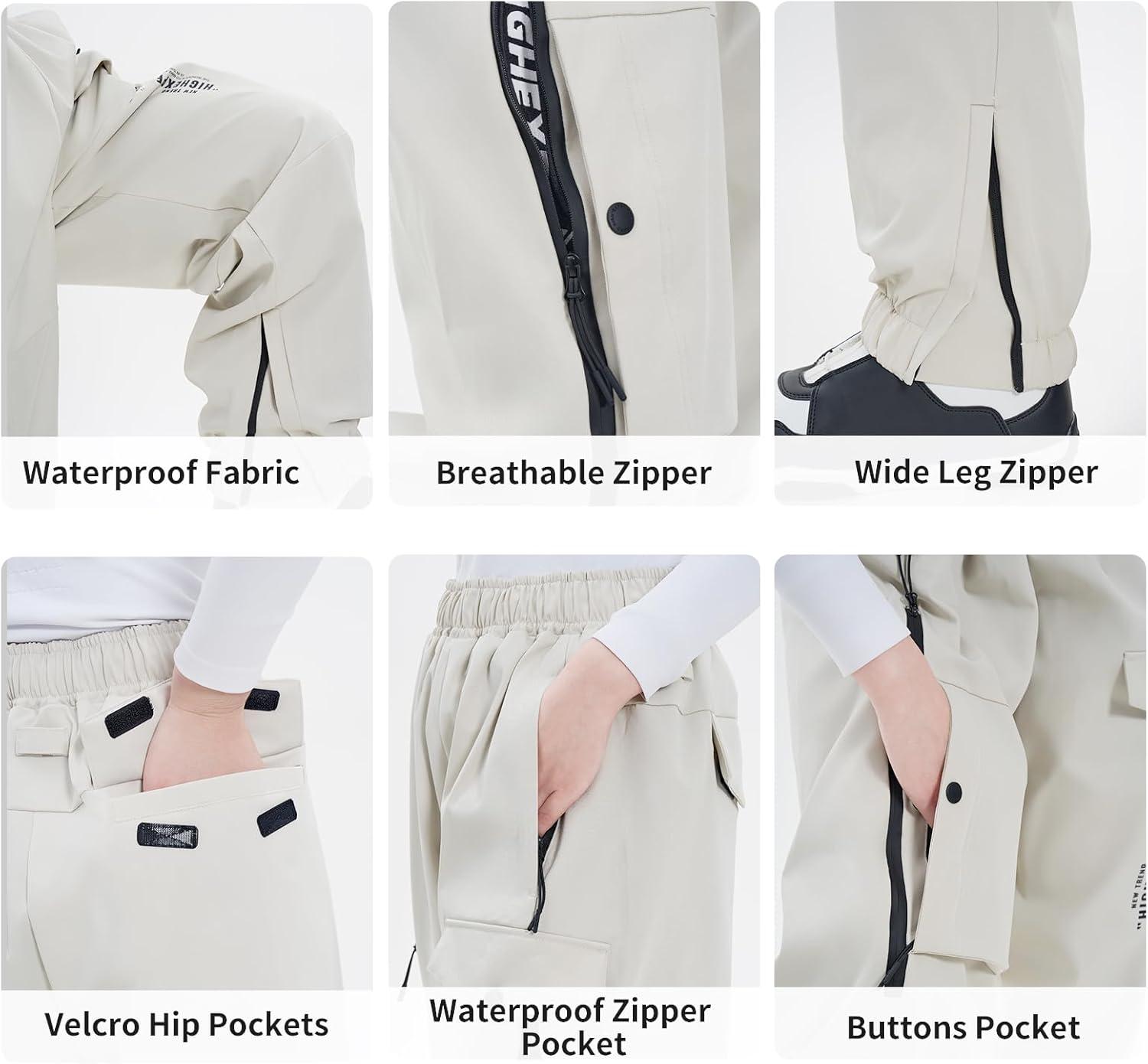 5.FUNCTIONAL DESIGN: Our snowboarding pants use high quality zippers and sealed seams to ensure durability and protection, and are designed with multiple functional pockets for easy storage of ski cards, cell phones, keys and other items.