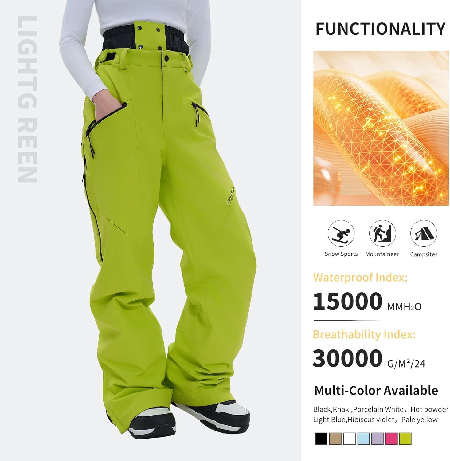 Ski Pants Snow Snowboard Pants Waterproof Insulated Baggy Windproof Hiking Winter Warm for Men Women(Light Green)