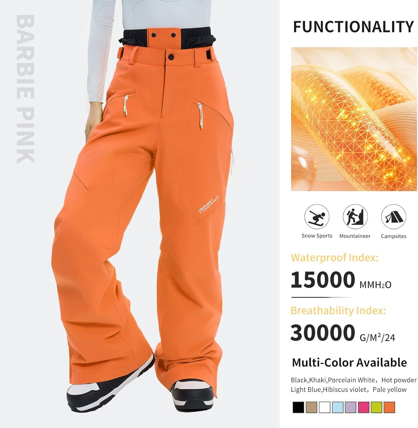 Ski Pants Snow Snowboard Pants Waterproof Insulated Baggy Windproof Hiking Winter Warm for Men Women(Orange)