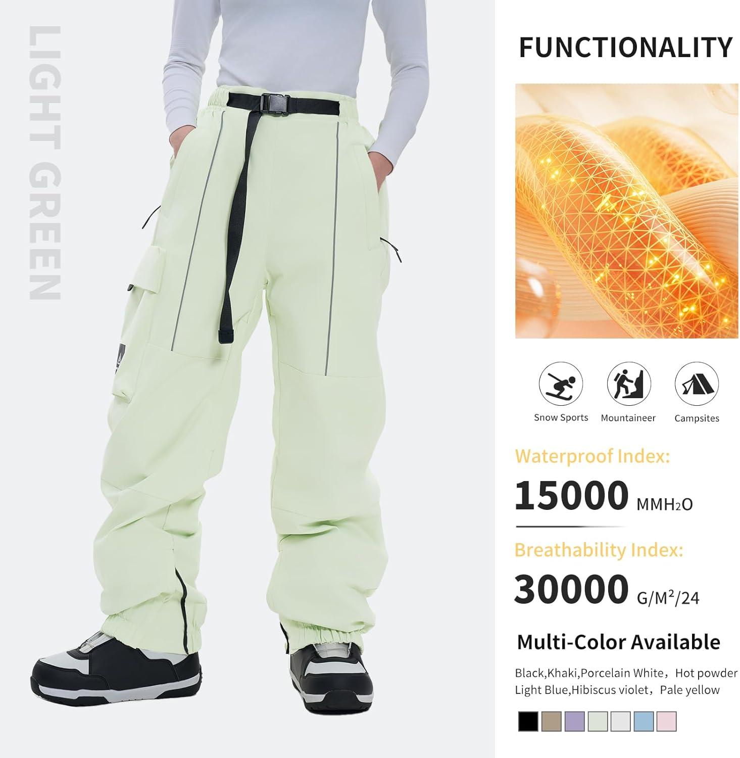 Ski Pants Snow Snowboard Pants Waterproof Insulated Baggy Windproof Hiking Winter Warm for Men Women(Pear Color)