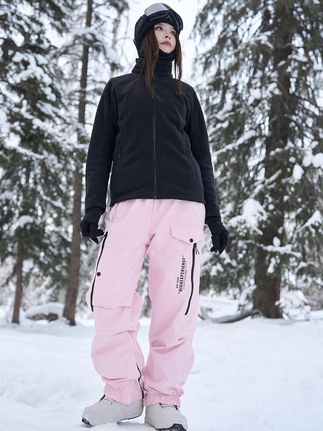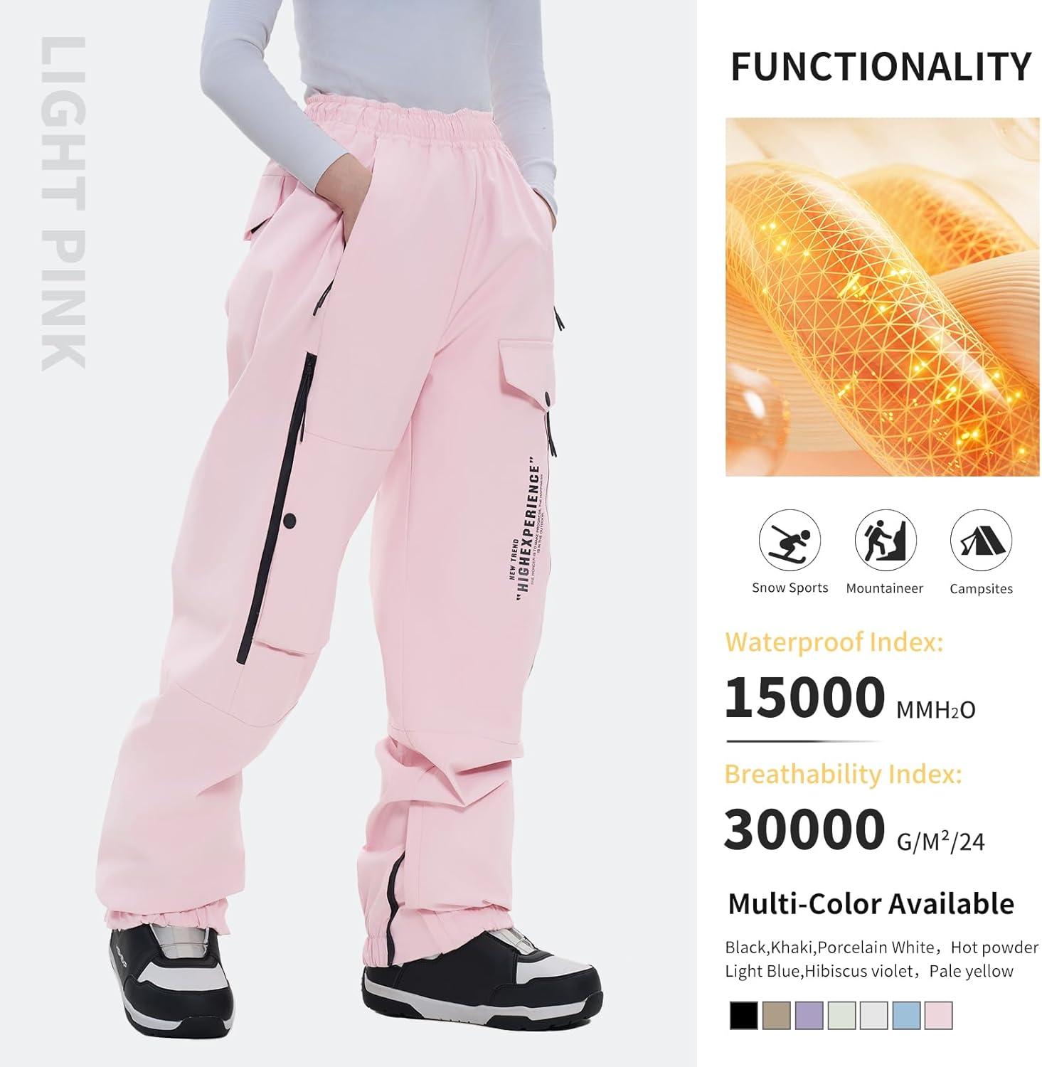 Ski Pants Snow Snowboard Pants Waterproof Insulated Baggy Windproof Hiking Winter Warm for Men Women(Pink)
