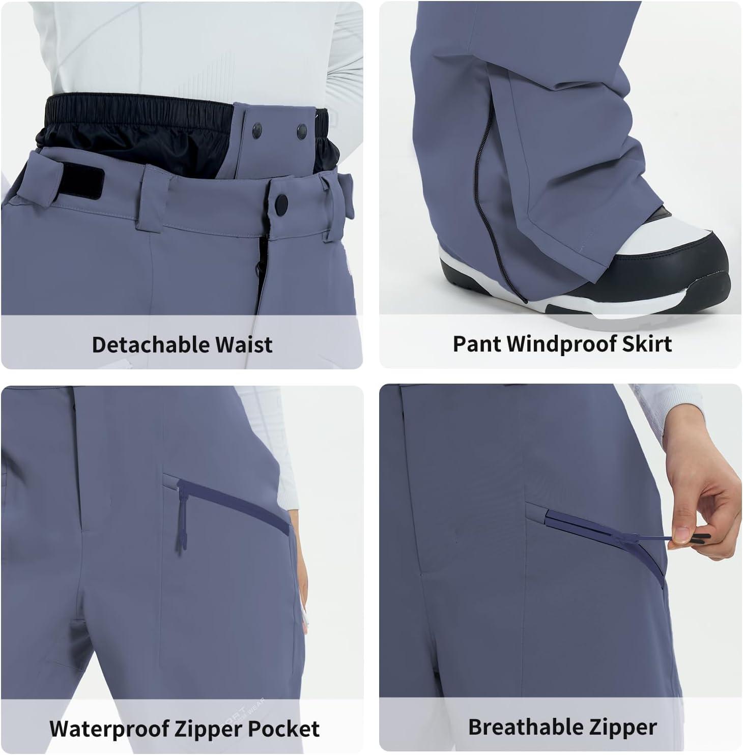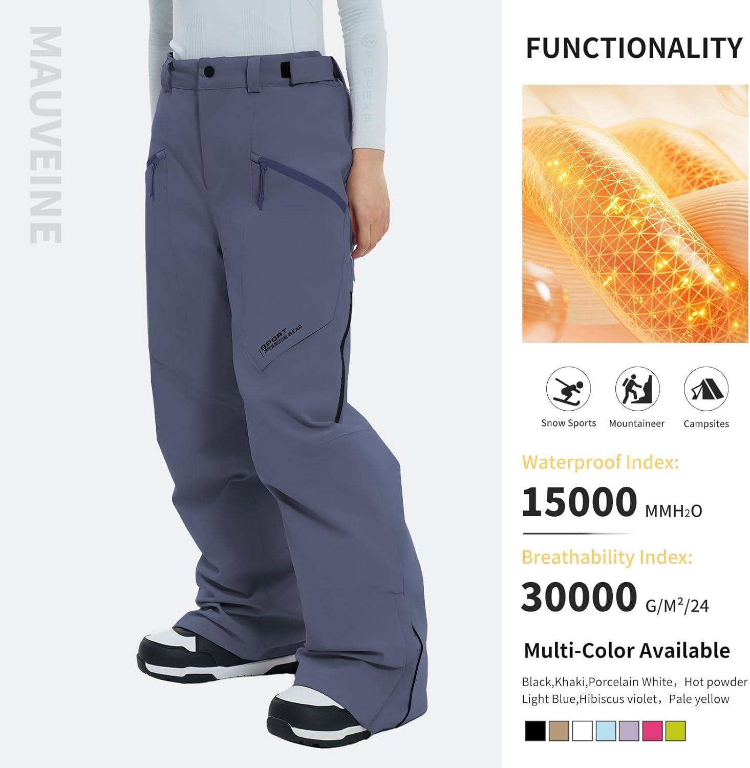 Ski Pants Snow Snowboard Pants Waterproof Insulated Baggy Windproof Hiking Winter Warm for Men Women(Purple)