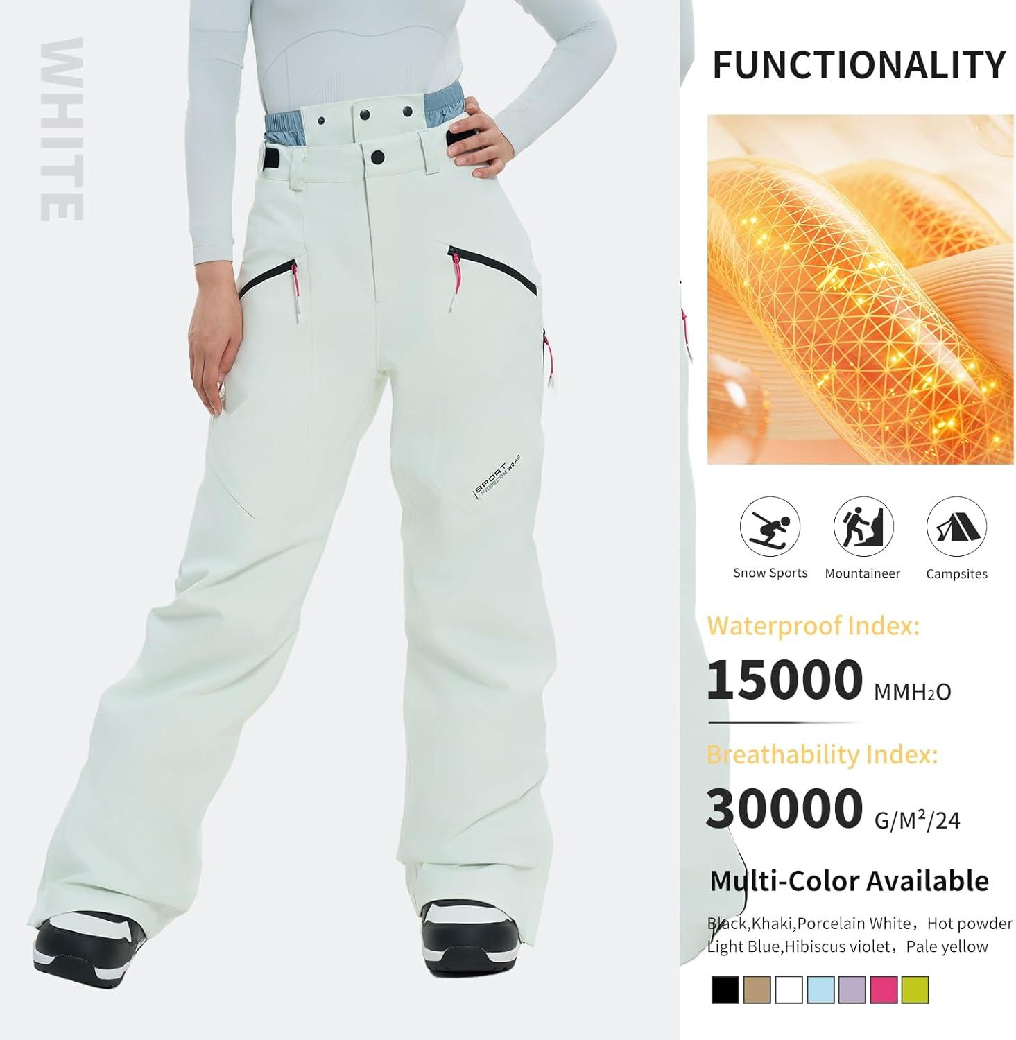 Ski Pants Snow Snowboard Pants Waterproof Insulated Baggy Windproof Hiking Winter Warm for Men Women(White)