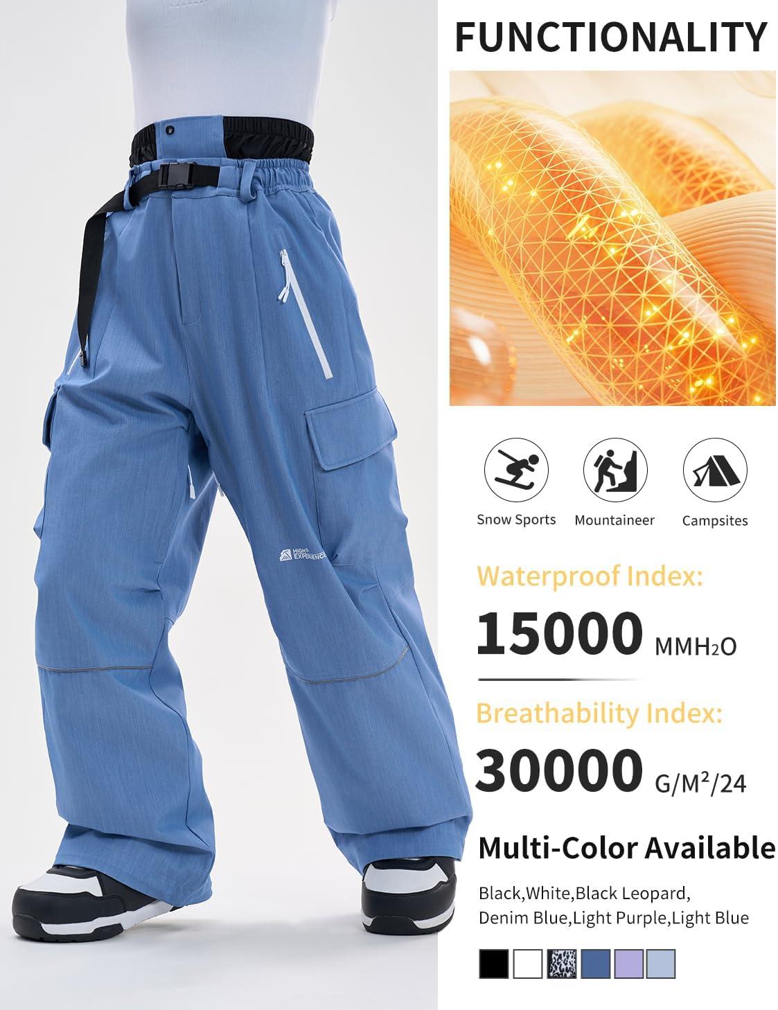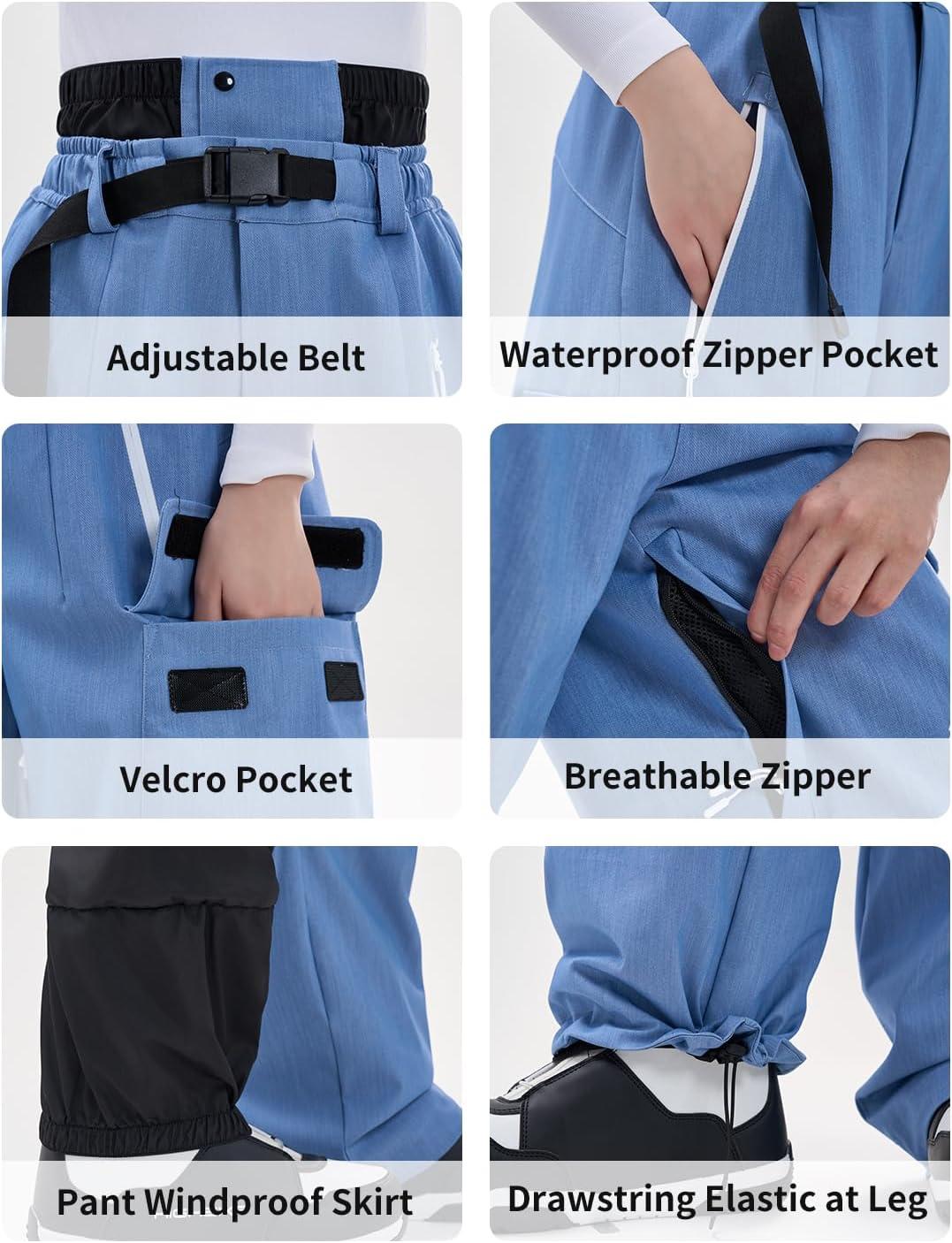 Snowboard Pants for Women Men Baggy Ski Pants Loose Warm Insulation Waterproof Windproof(Denim Blue)