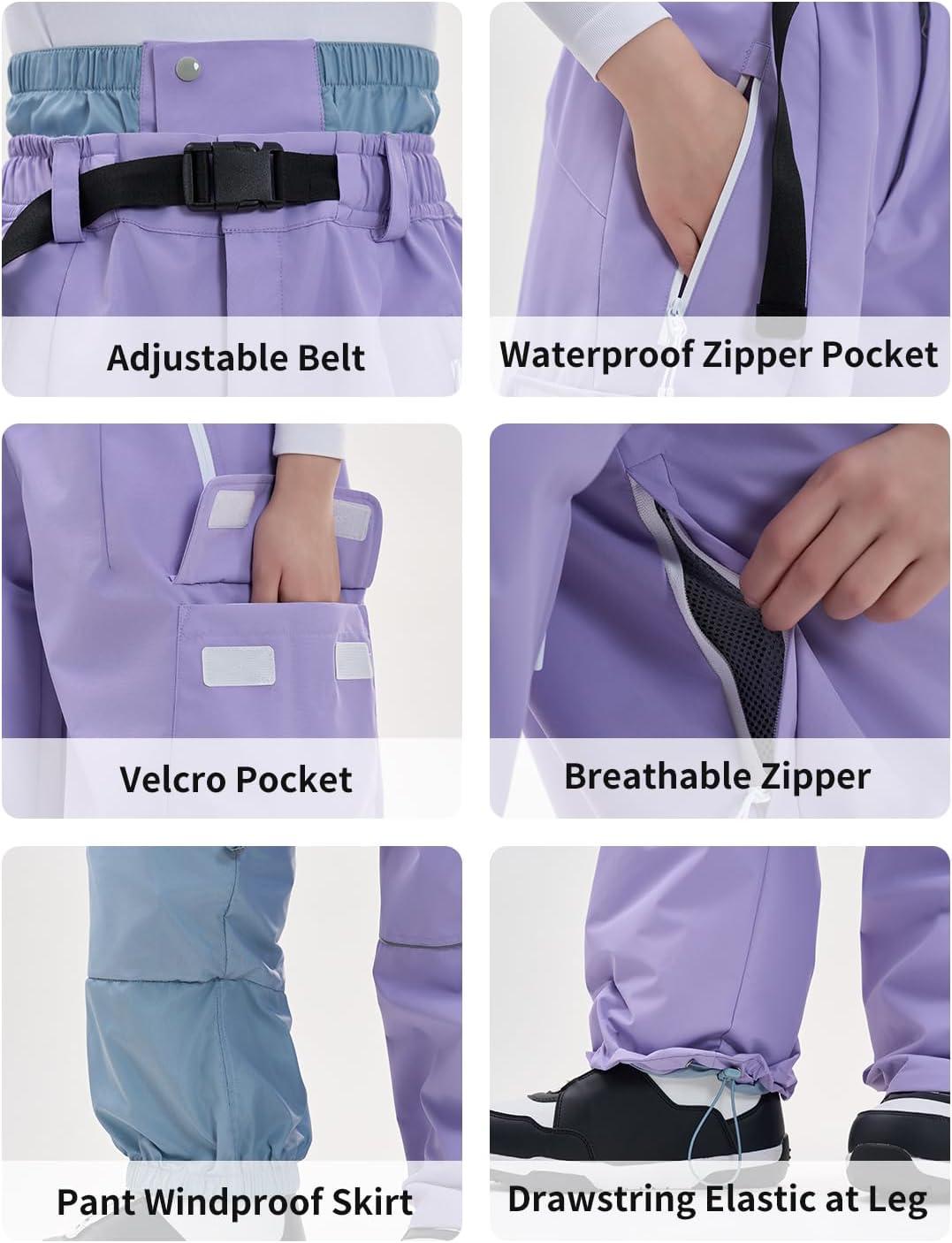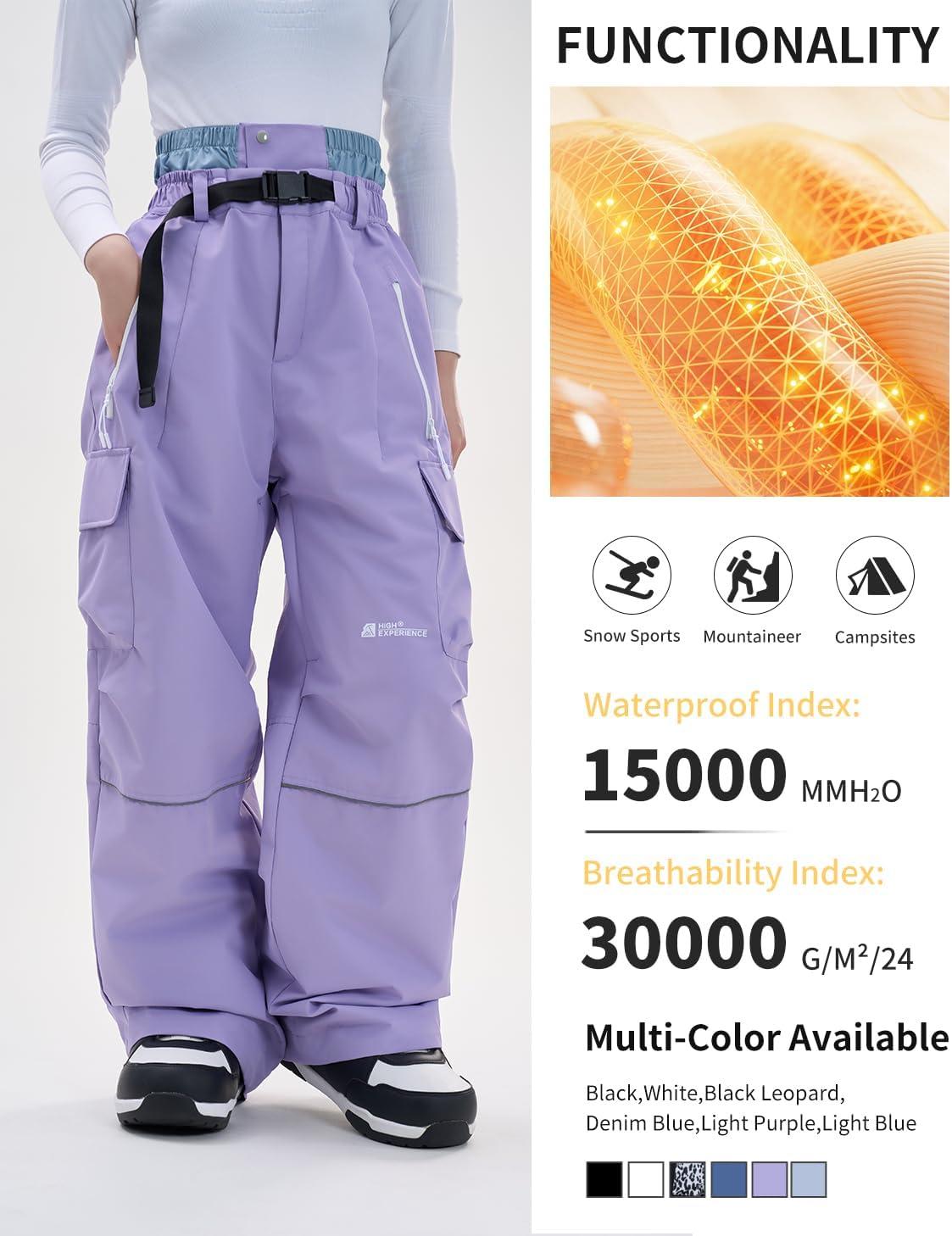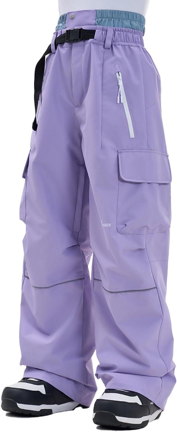 Snowboard Pants for Women Men Baggy Ski Pants Loose Warm Insulation Waterproof Windproof(Light Purple)