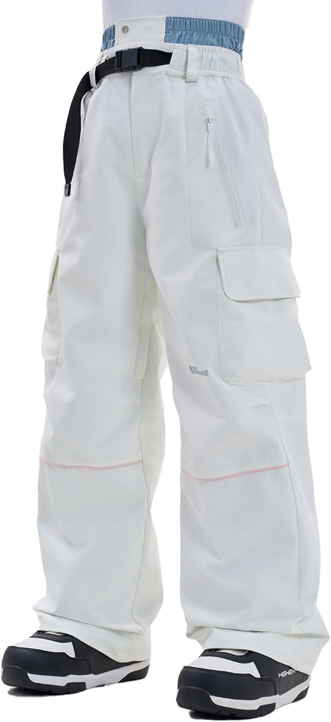 Snowboard Pants for Women Men Baggy Ski Pants Loose Warm Insulation Waterproof Windproof(White)