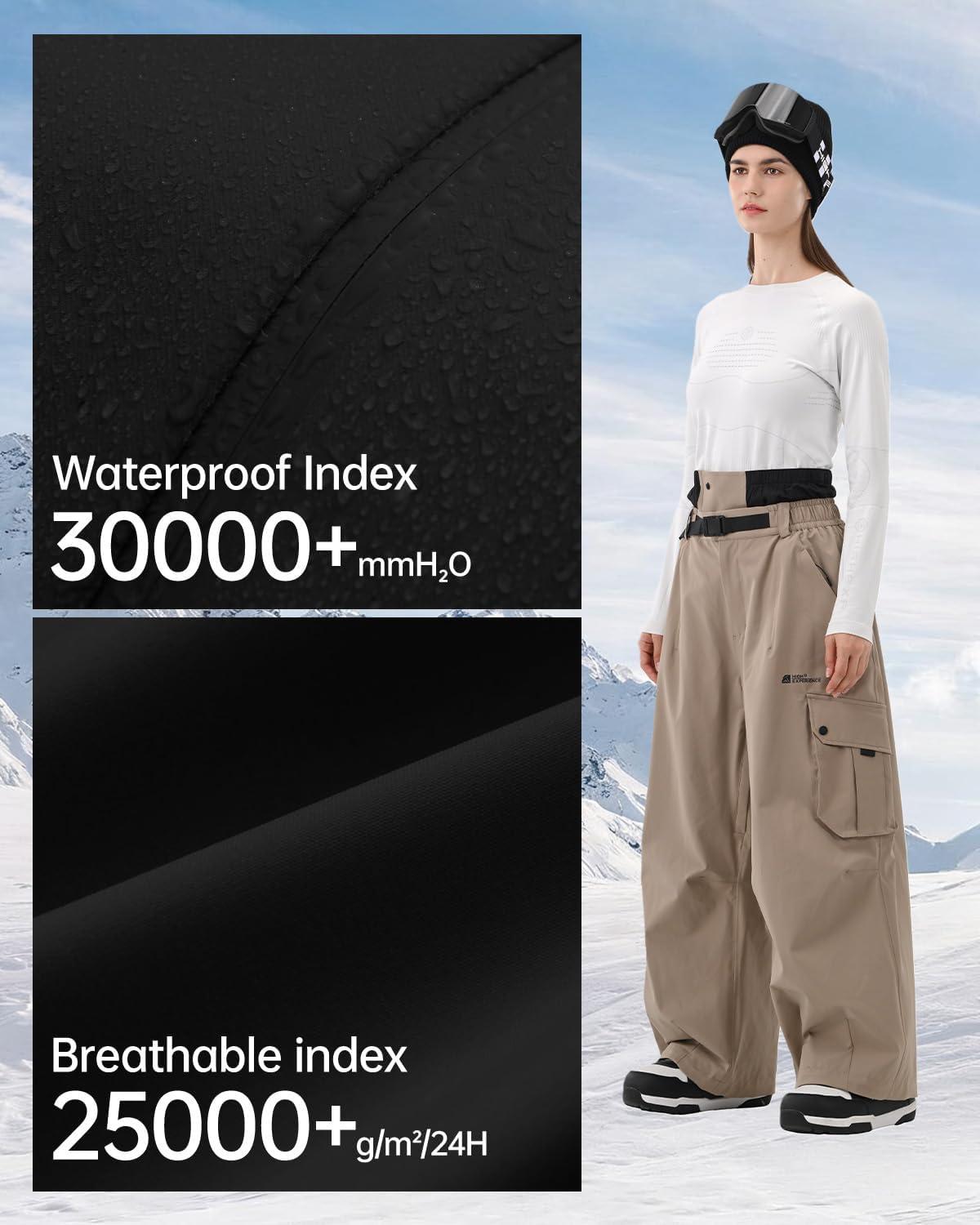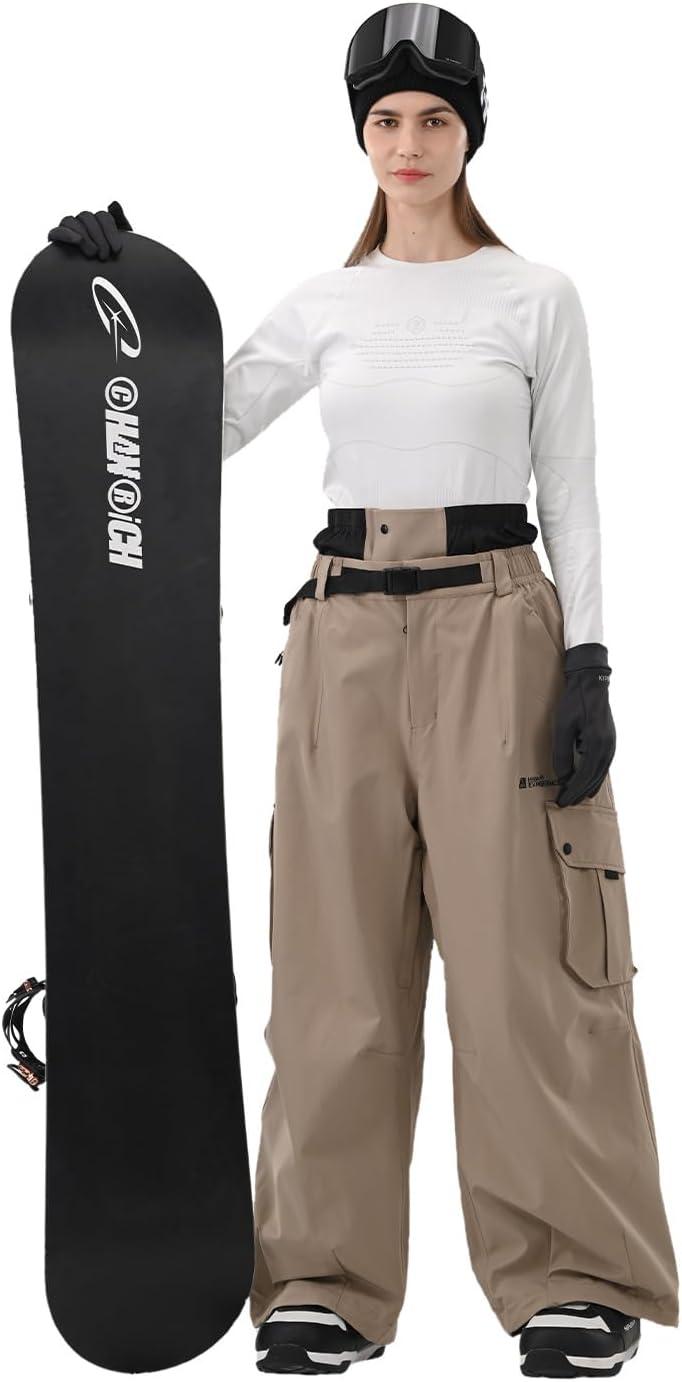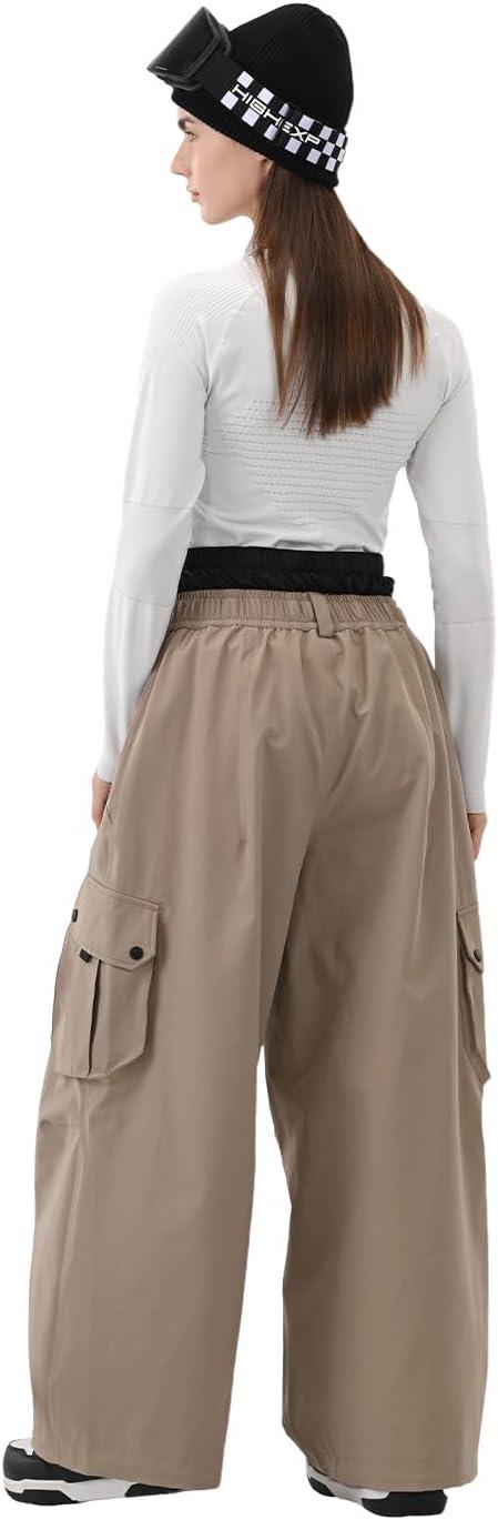 Snowboard Pants for Women Men Baggy Ski Pants Snow Loose Warm Insulated Winterproof Waterproof(Khaki)