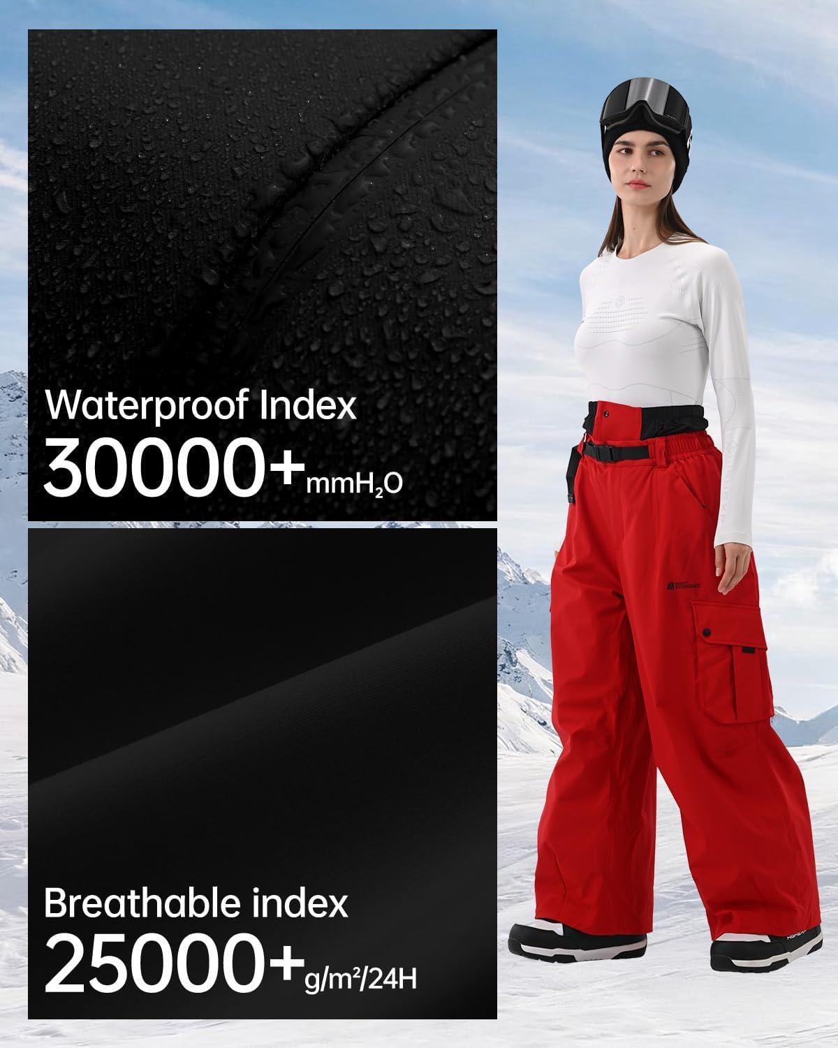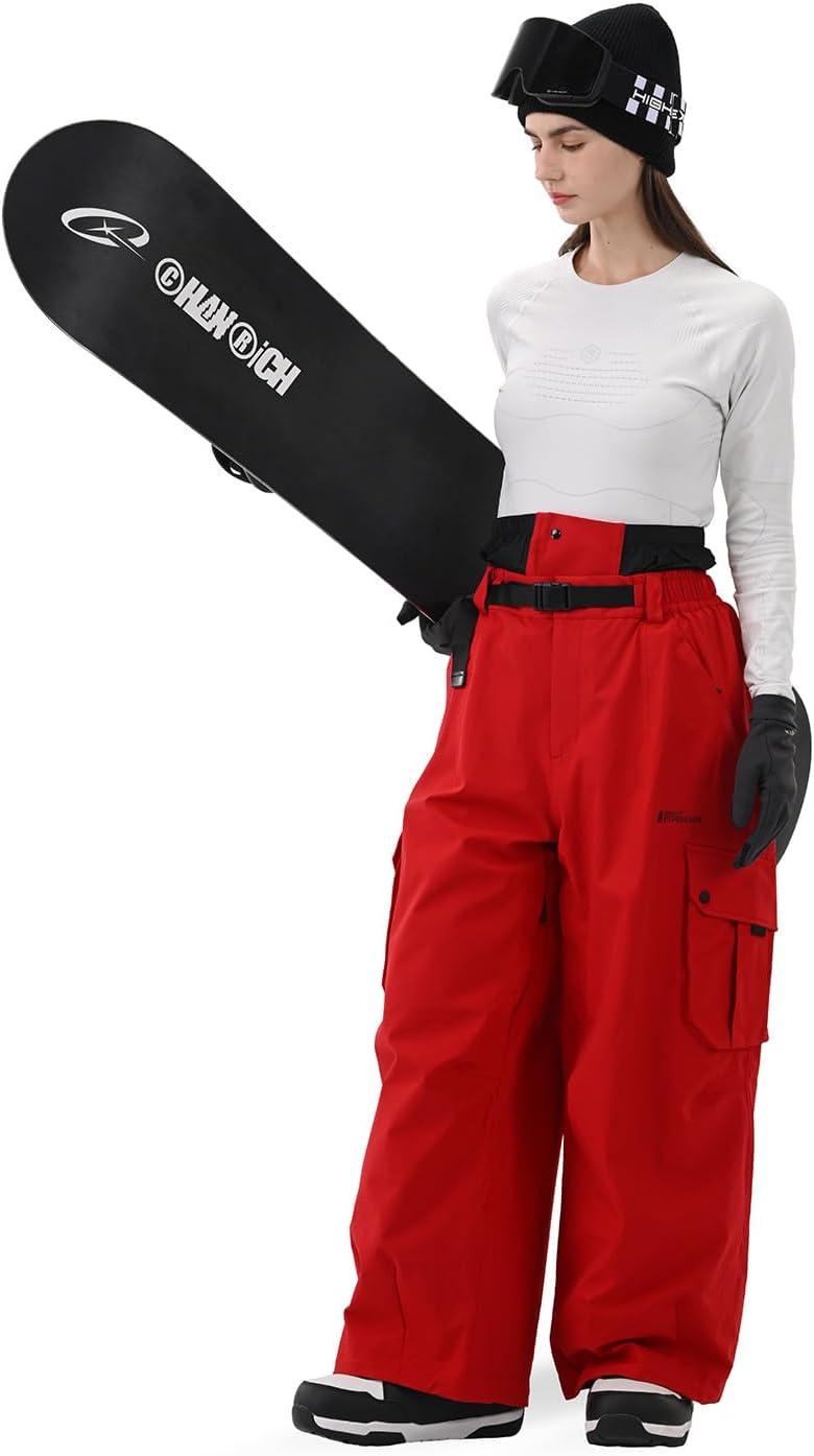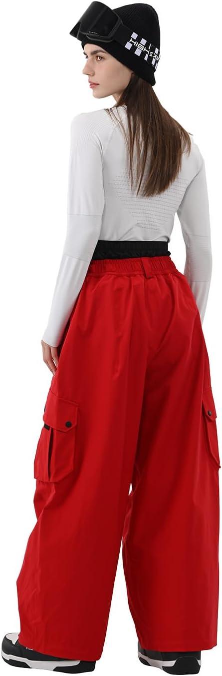 Snowboard Pants for Women Men Baggy Ski Pants Snow Loose Warm Insulated Winterproof Waterproof(Red)