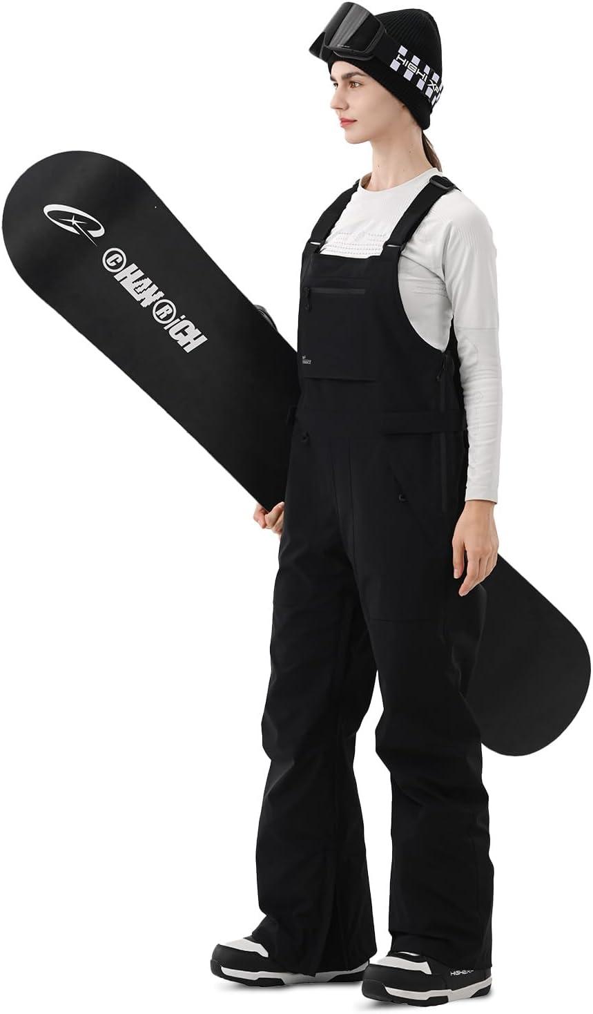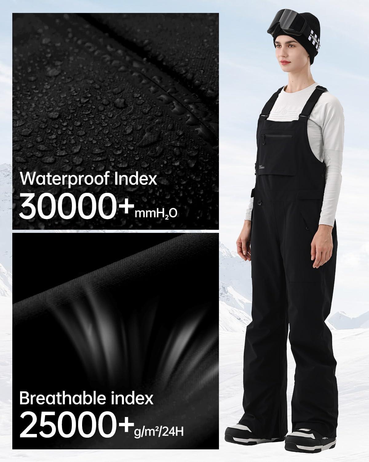 Women Ski Bib Snowboard Pants Snow Overalls Waterproof Windproof Insulate Warm Winter(Black)