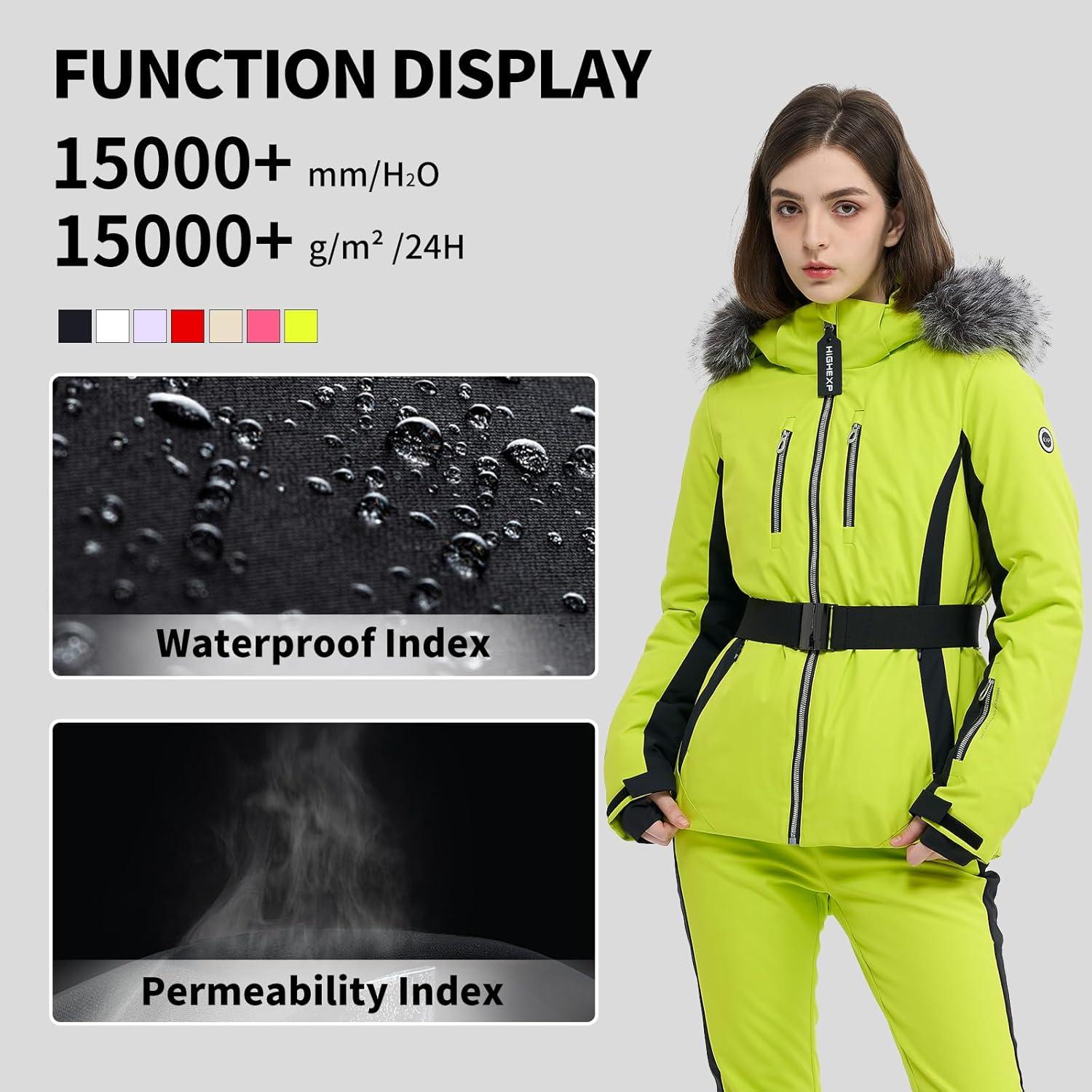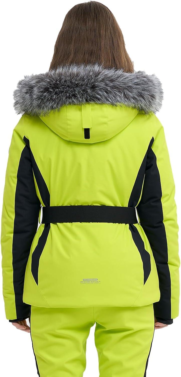 Women Ski Jacket Snowboard Fitted Slim Fit Short Snow Coat Belted Mountain Waterproof Insulated Warm Winter(Light Green)