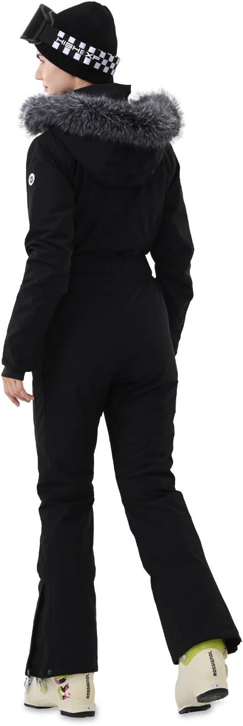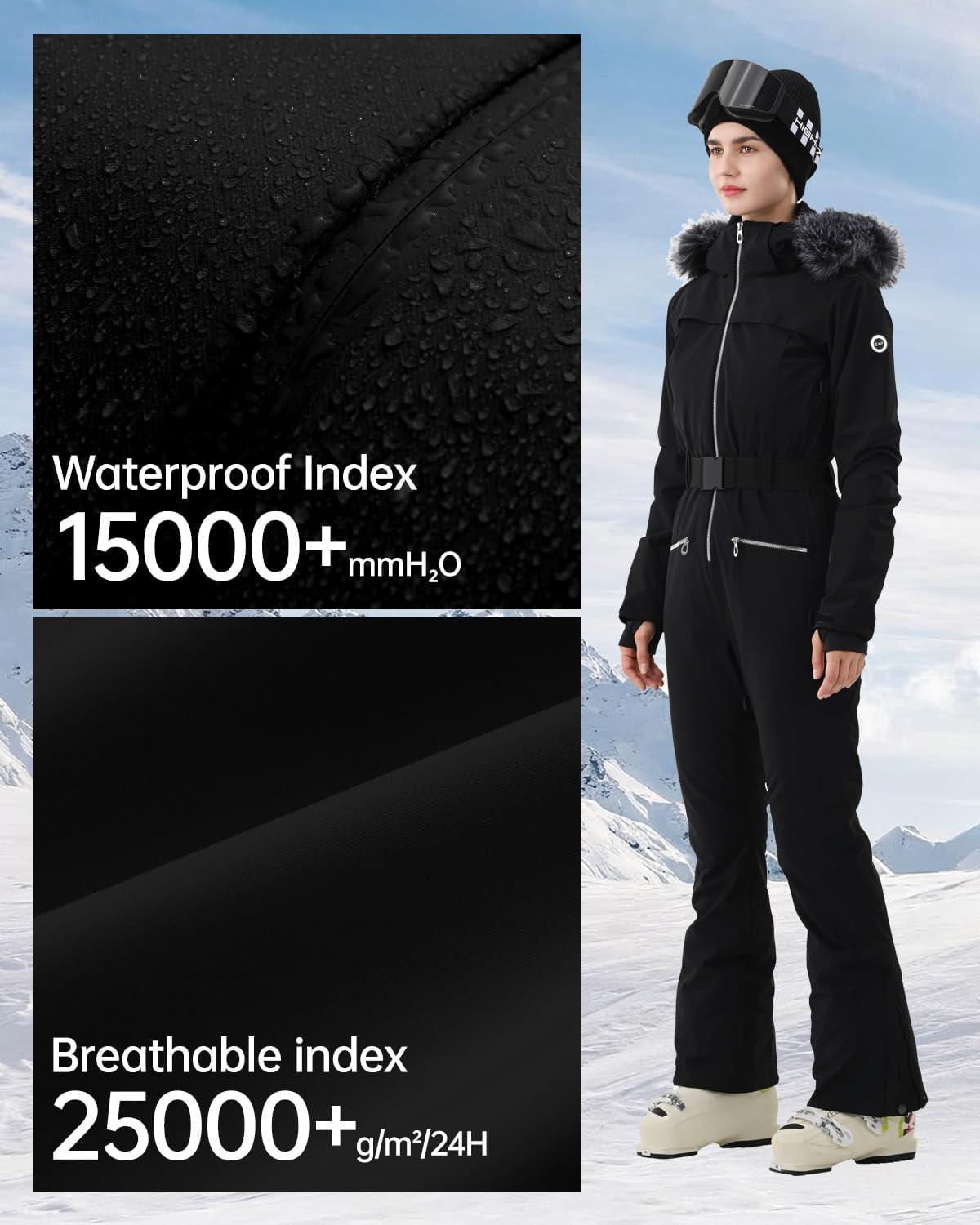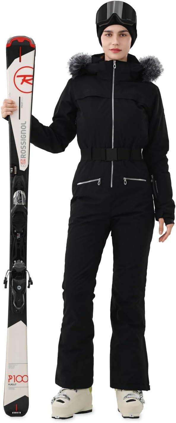 Women Ski Suit One Piece Slim Snowsuit Snow Outfit Snowboard Onesie Waterproof Insulated Winter Warm(Black)