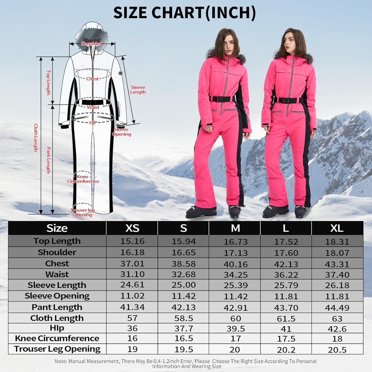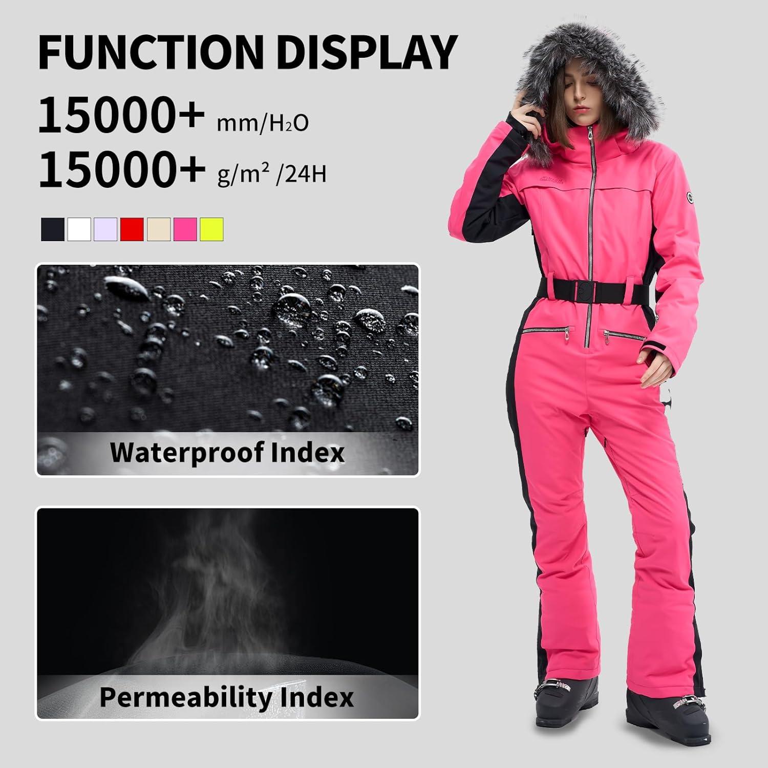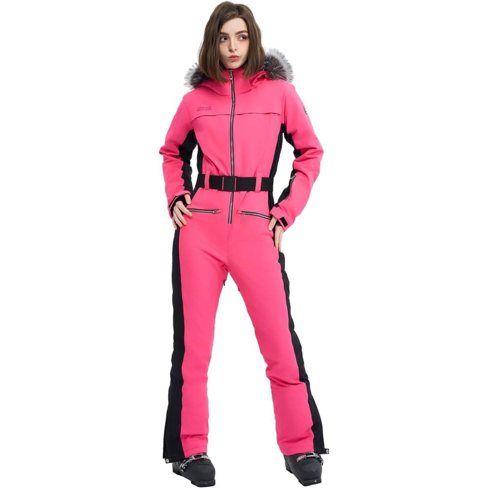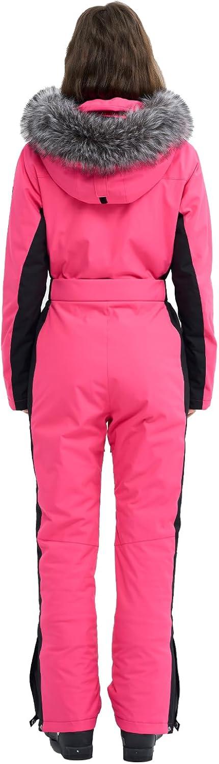 Women Ski Suit One Piece Snow Jumpsuit Snow Stretchy Outfit Snowboard Onesie Insulated Waterproof Winter Warm(Hot Pink)