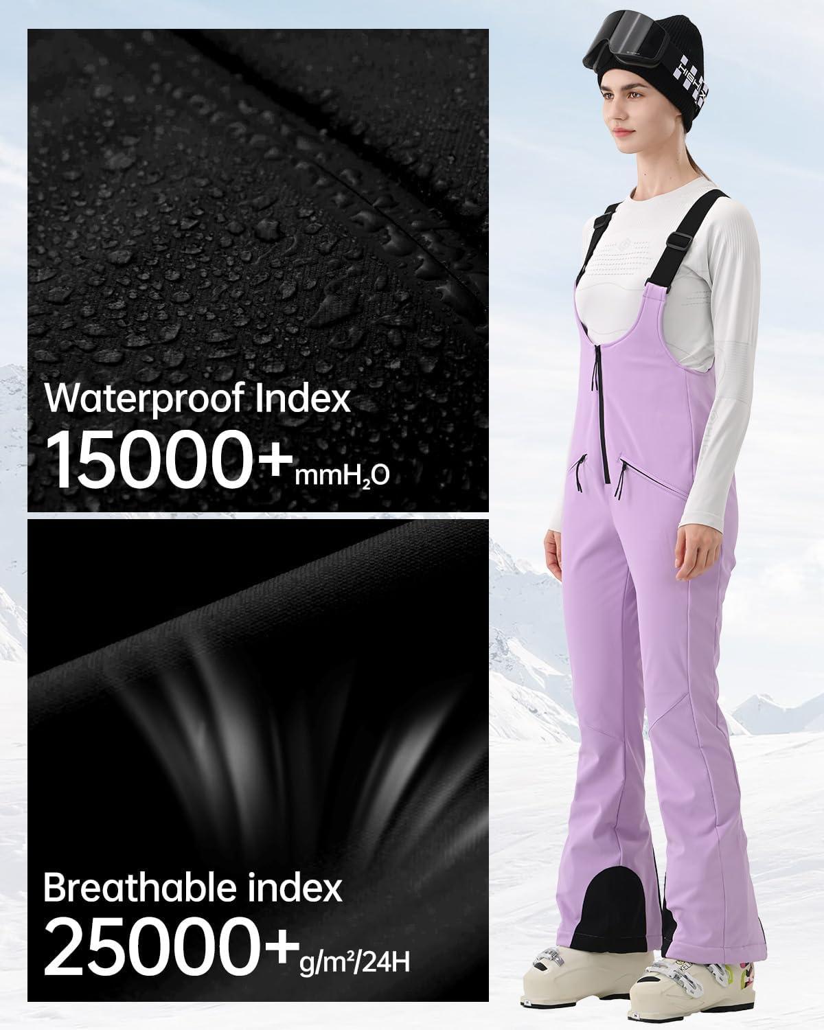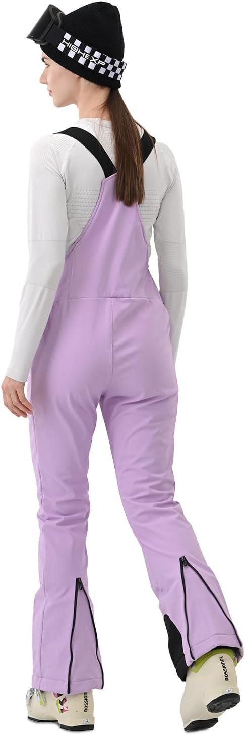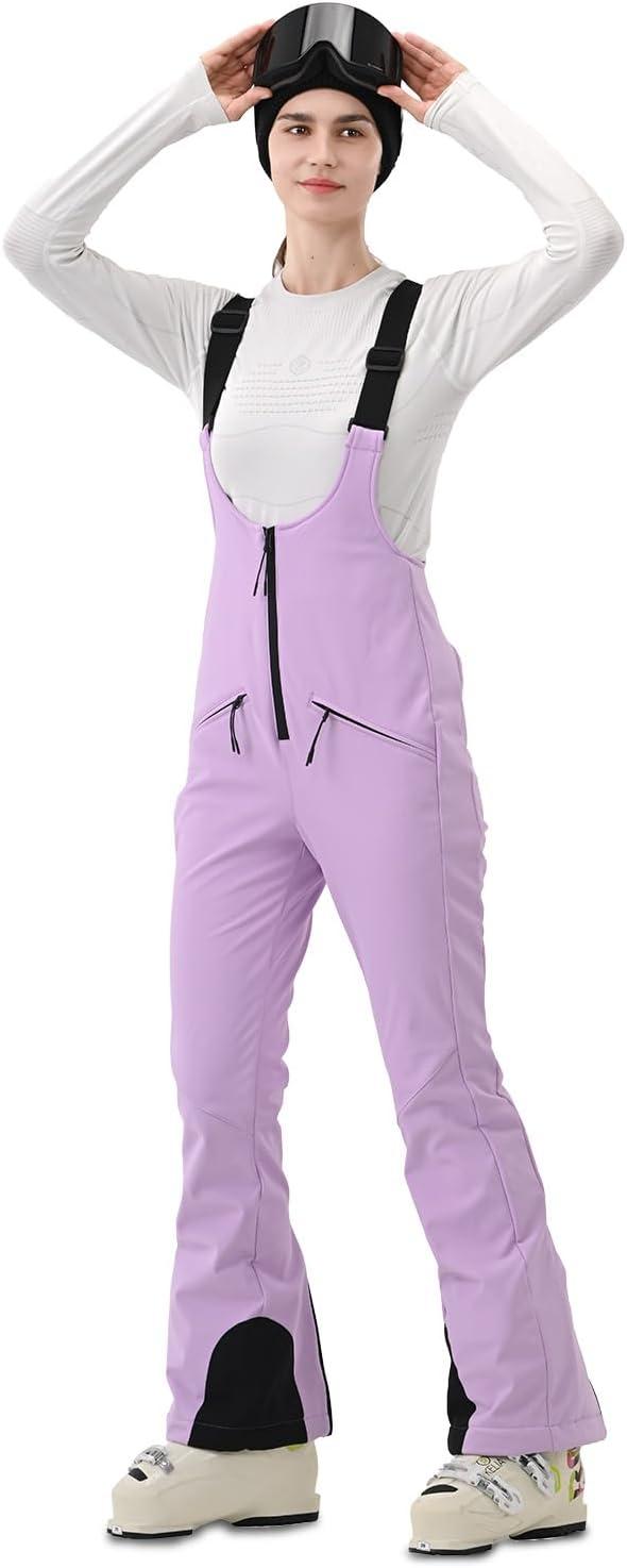 Womens Ski Bib Pants Skinny Soft Shell Snow Overalls Slim Fit Fitted Snowboard Insulated Waterproof Windproof(Light Purple)