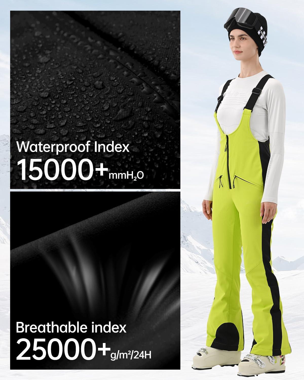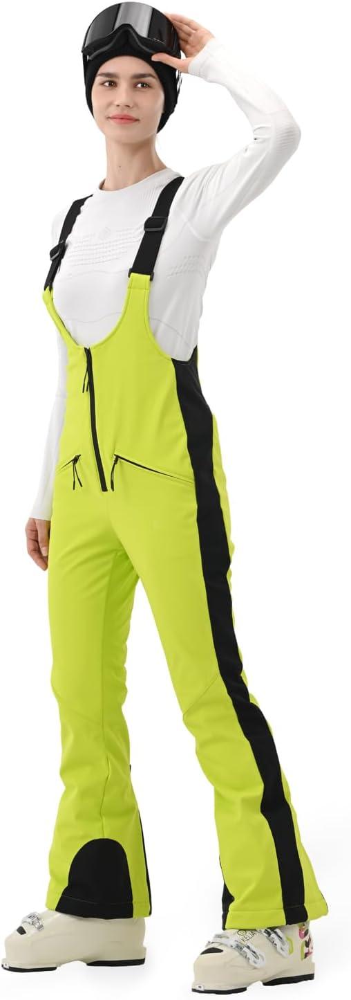 Womens Ski Bib Pants Slim Fit Soft Shell Snow Skinny Fitted Snowboard Insulated Waterproof Windproof Warm(Light Green)