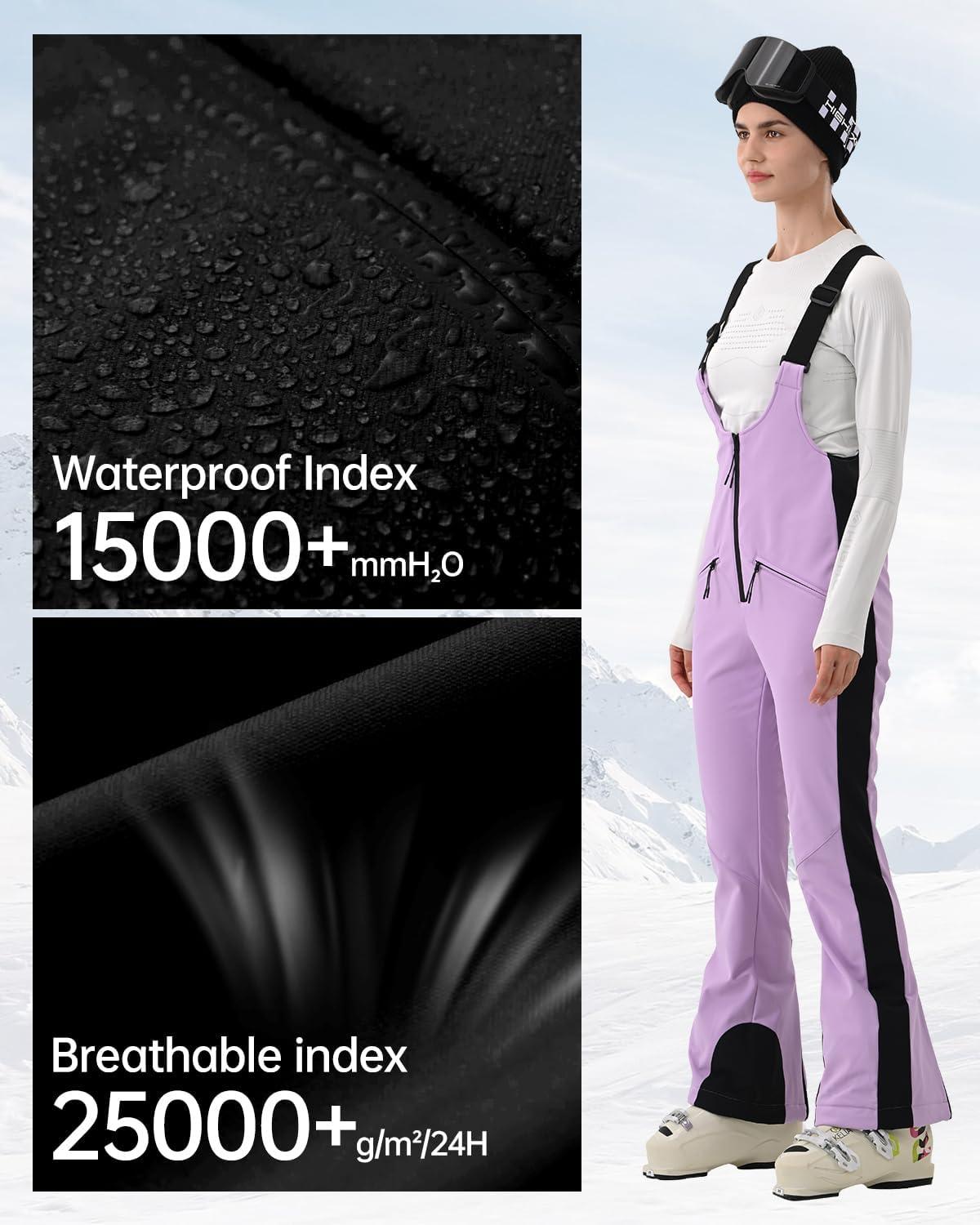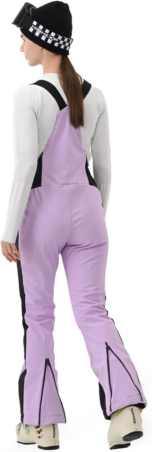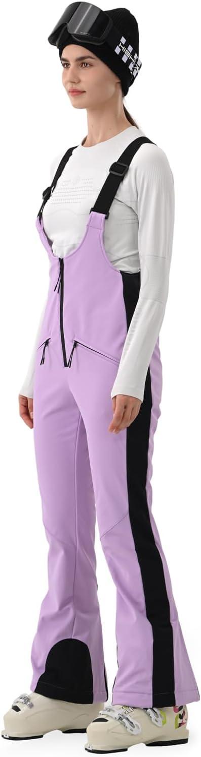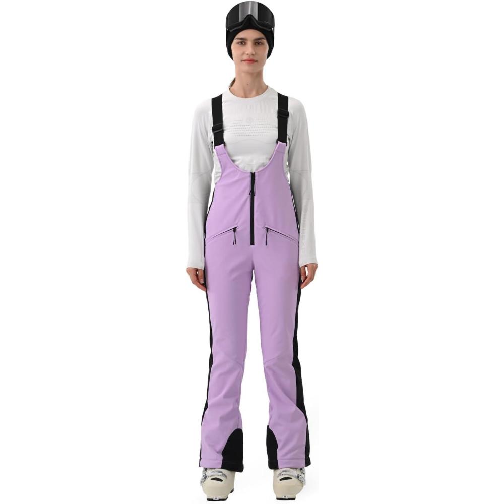 Womens Ski Bib Pants Slim Fit Soft Shell Snow Skinny Fitted Snowboard Insulated Waterproof Windproof Warm(Light Purple)