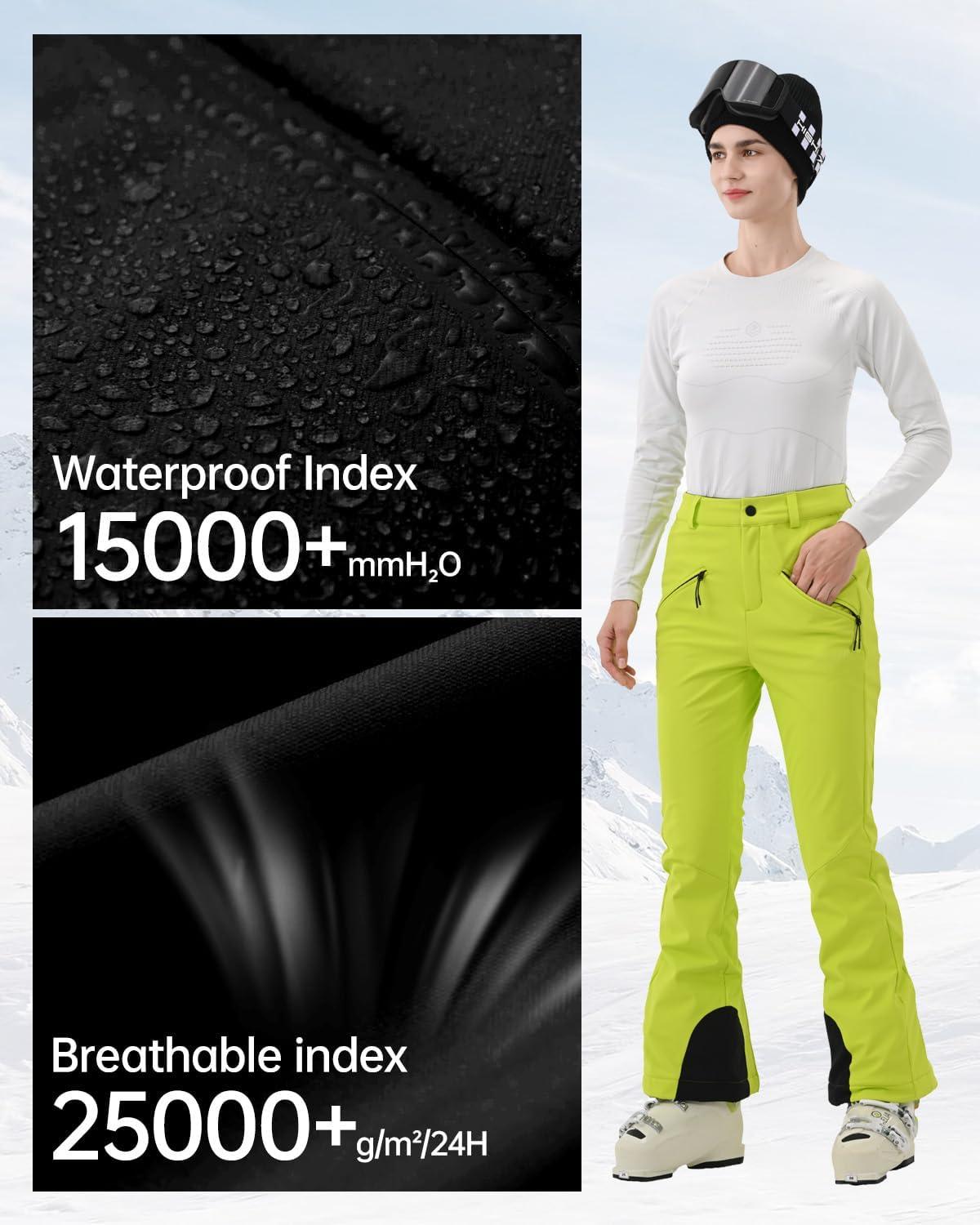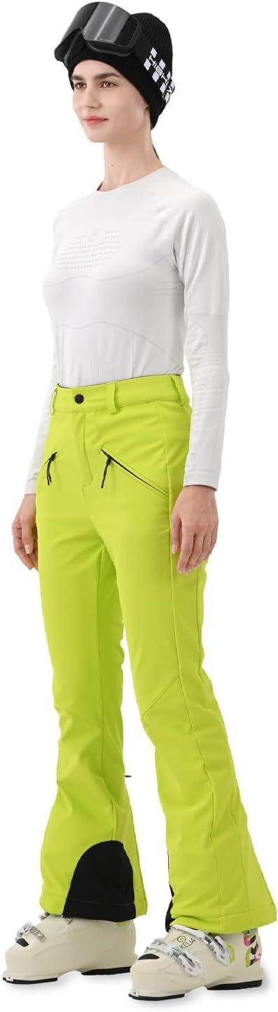 Womens Ski Pants Slim Fit Snow Fleece Lined Snowboard Soft Shell Fitted Insulated Waterproof Windproof Warm(Light Green)