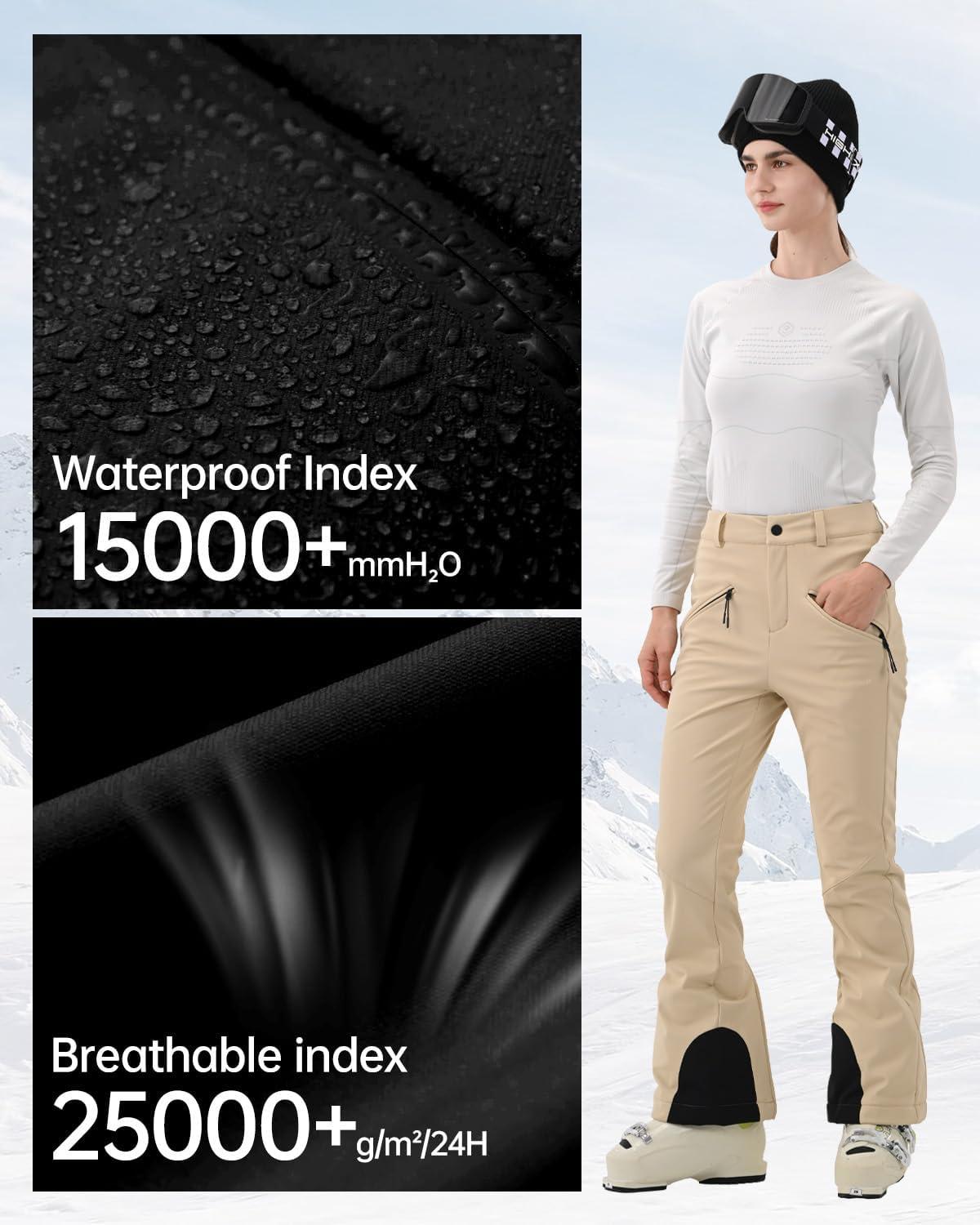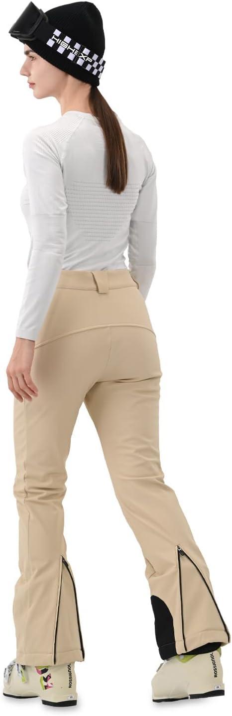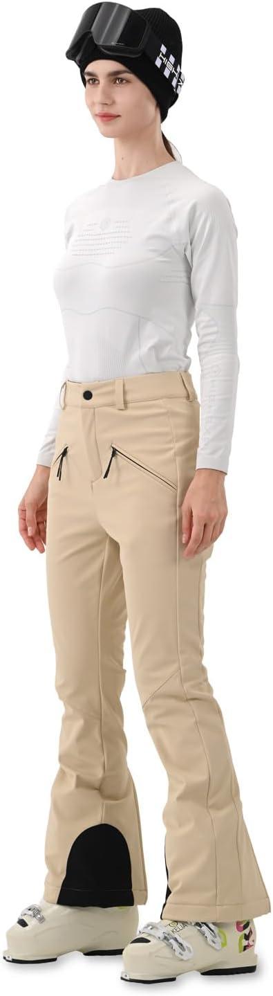 Womens Ski Pants Slim Fit Snow Fleece Lined Snowboard Soft Shell Fitted Insulated Waterproof Windproof Warm(Light Khaki)