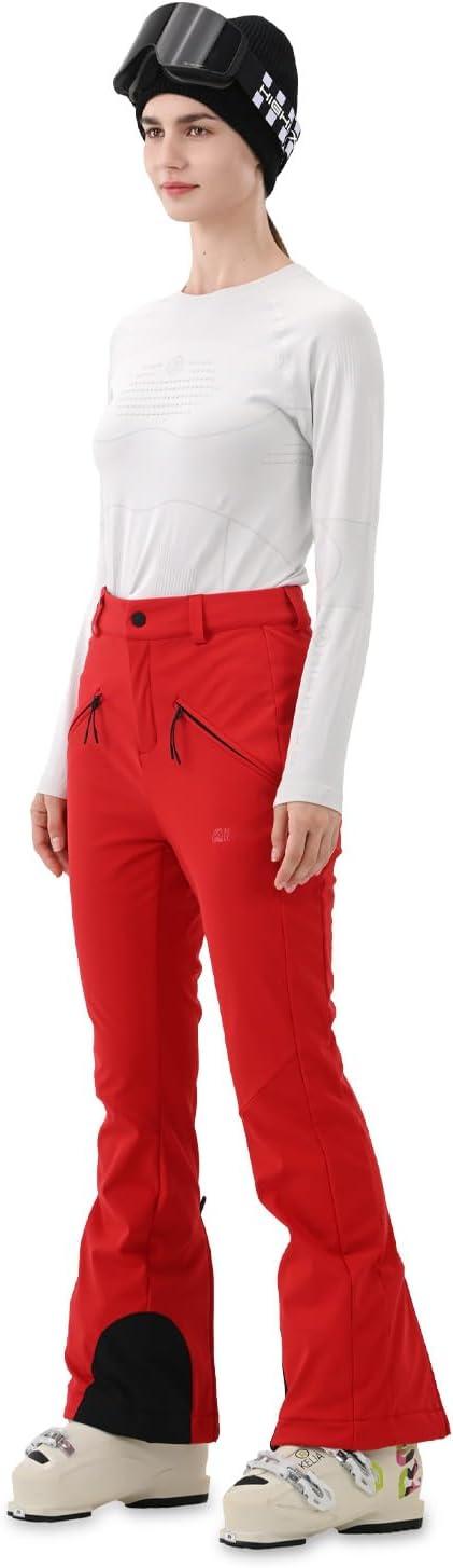 Womens Ski Pants Slim Fit Snow Fleece Lined Snowboard Soft Shell Fitted Insulated Waterproof Windproof Warm(Red)