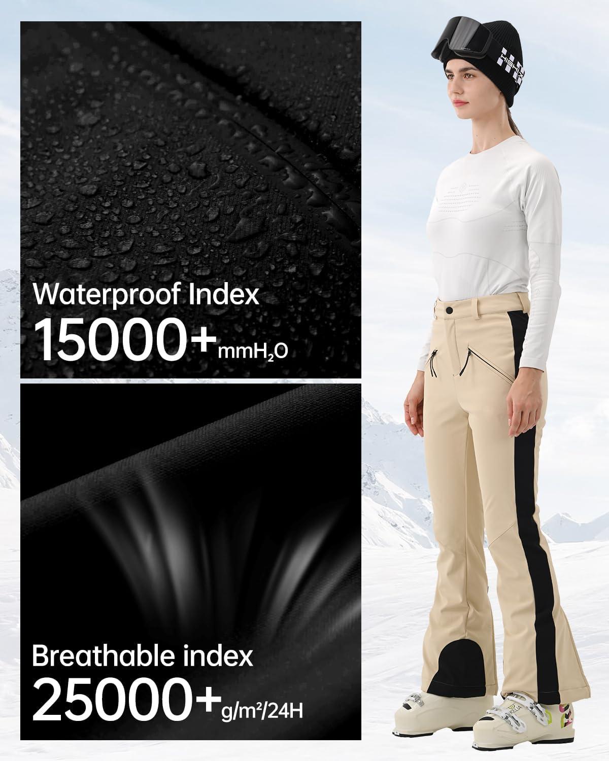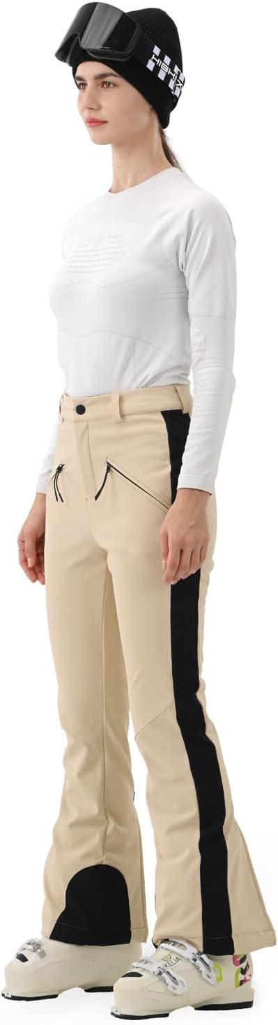 Womens Ski Pants Slim Fit Soft Shell Snow Fleece Lined Snowboard Fitted Insulated Waterproof Windproof Warm(Light Khaki)