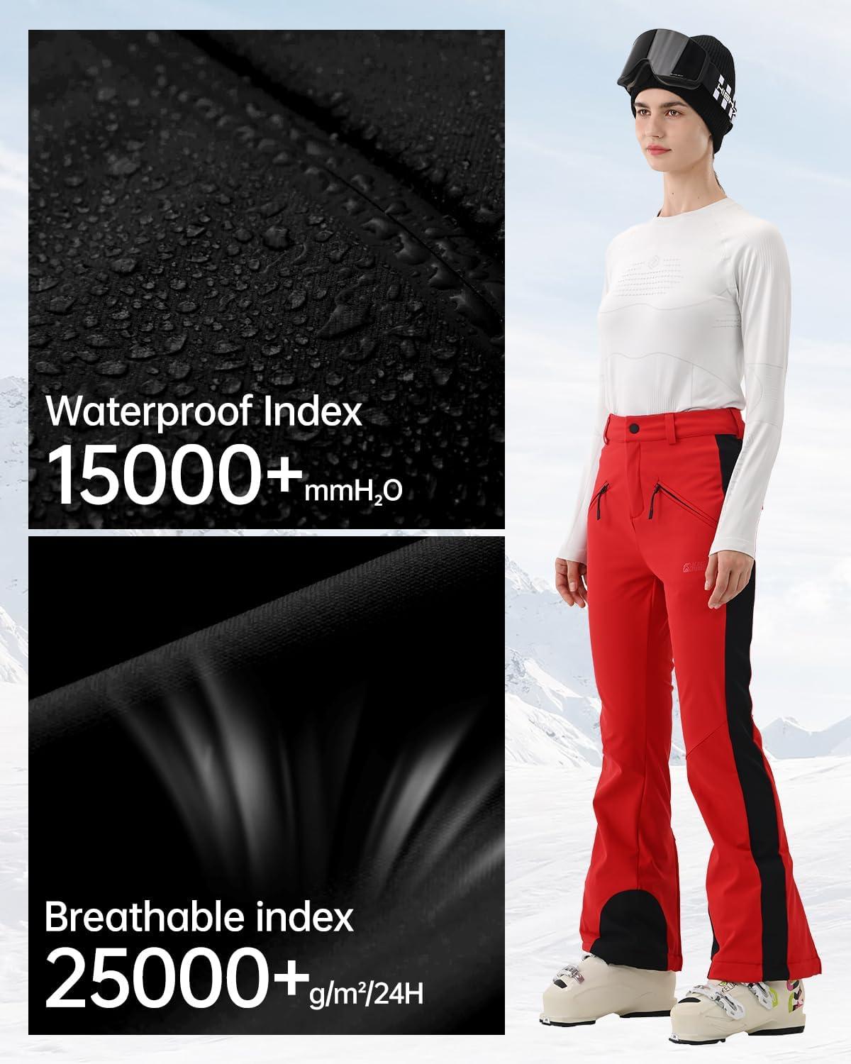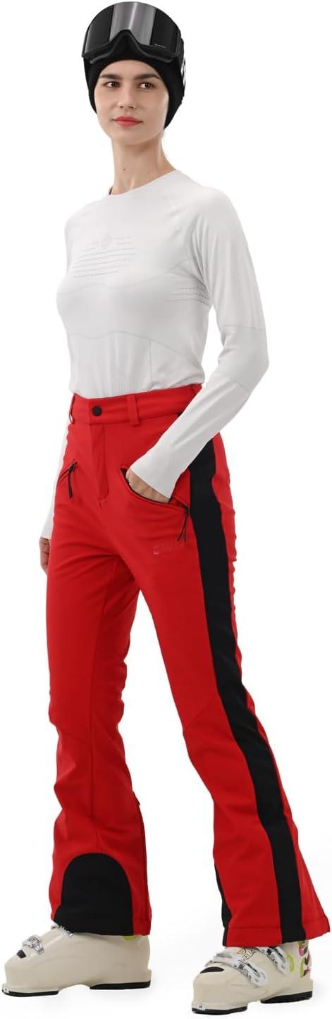 Womens Ski Pants Slim Fit Soft Shell Snow Fleece Lined Snowboard Fitted Insulated Waterproof Windproof Warm(Red)