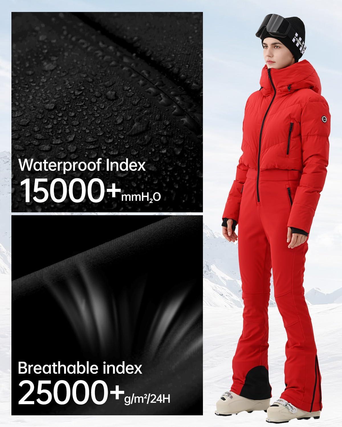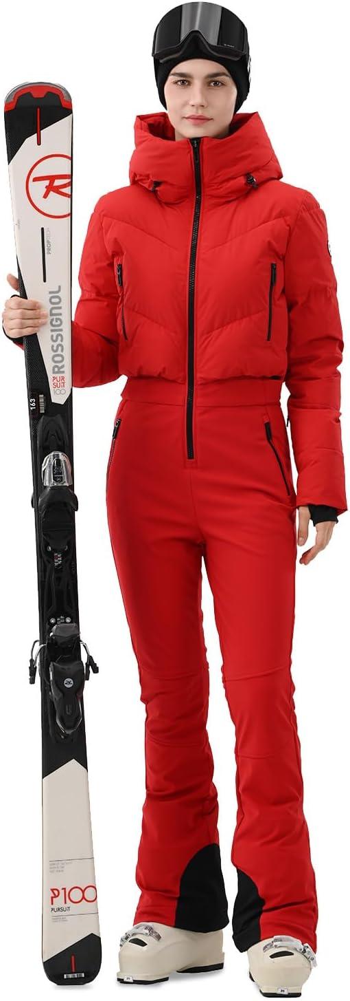 Womens Ski Suit One Piece Snowsuit Snow Slim Jumpsuits Snowboard Outfit Waterproof Insulated Winter Warm(Red)